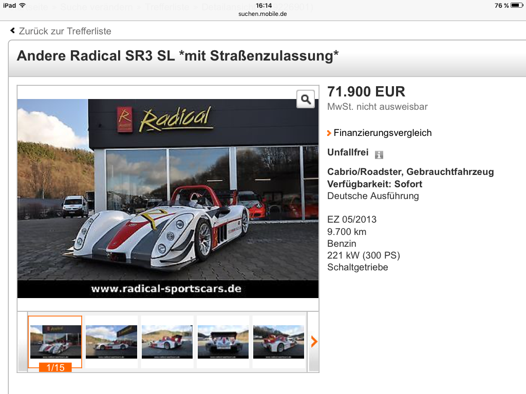 Wenn ich mein Budget bis 100t hichschrauben würde wäre auch noch GT3 und GT4 drin (die sind selbst in Stgt selten). Aber das is dann einfach too much. Ich muss das ganze ja auch nachher noch unterhalten. :-)