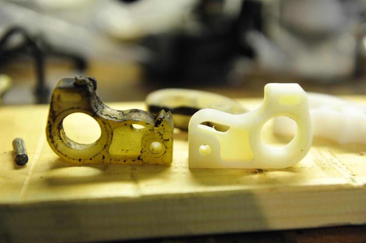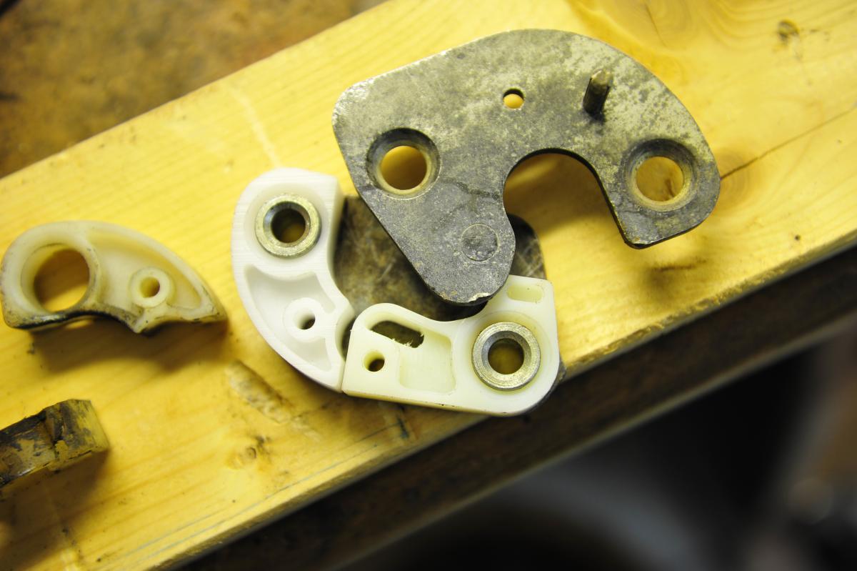 Einfach ein neues Ersatzteil zu kaufen erschien mir zu profan, und umso größer war meine Freude darüber, dass es einen Reparatursatz (einfach mal "Reparatursatz für Schließkeil passend für Porsche 911 / 912 / 930" googeln, Kosten ca. 25€) gibt. Die Tür schließt und öffnet nun wieder mit der Präzision eines Schweizer Banktresors.