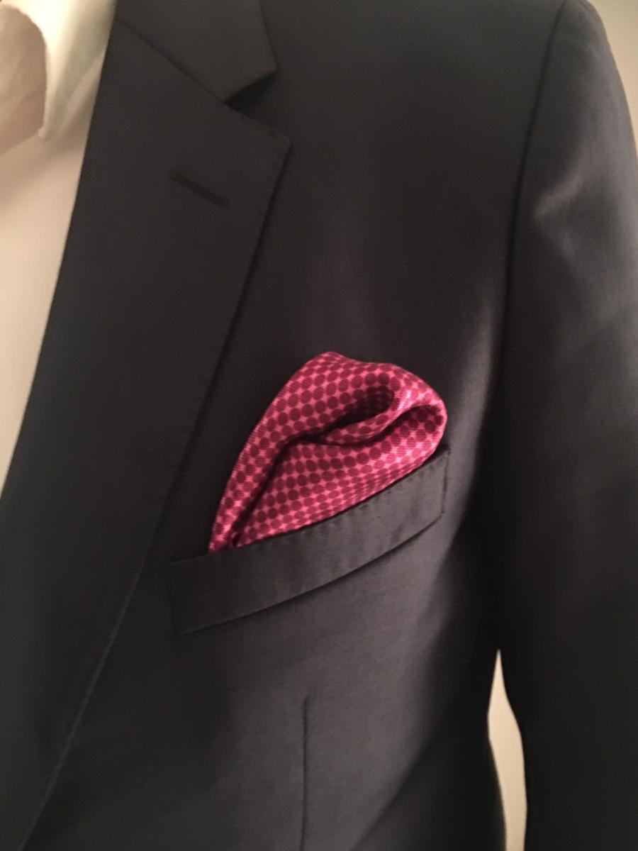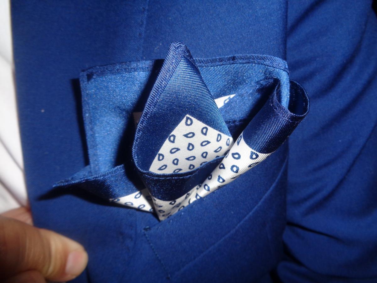 So, zurück zum eigentlichen Thema hier nun mein abendliches Pochette getragen zum gesetzten Essen in einer Zwölferrunde mit Koch und Lohndiener, sagt man das nicht so in den Berliner Salons Herr Servatius?  Mein Anzug war nicht Schwarz so wie es  das Bild vermuten lässt, sonder ein sehr dunkles  Ferrrai "Pozzi Blue" und so wollte ich mit dem gewählten Pochette einen schönen Kontrast setzten.