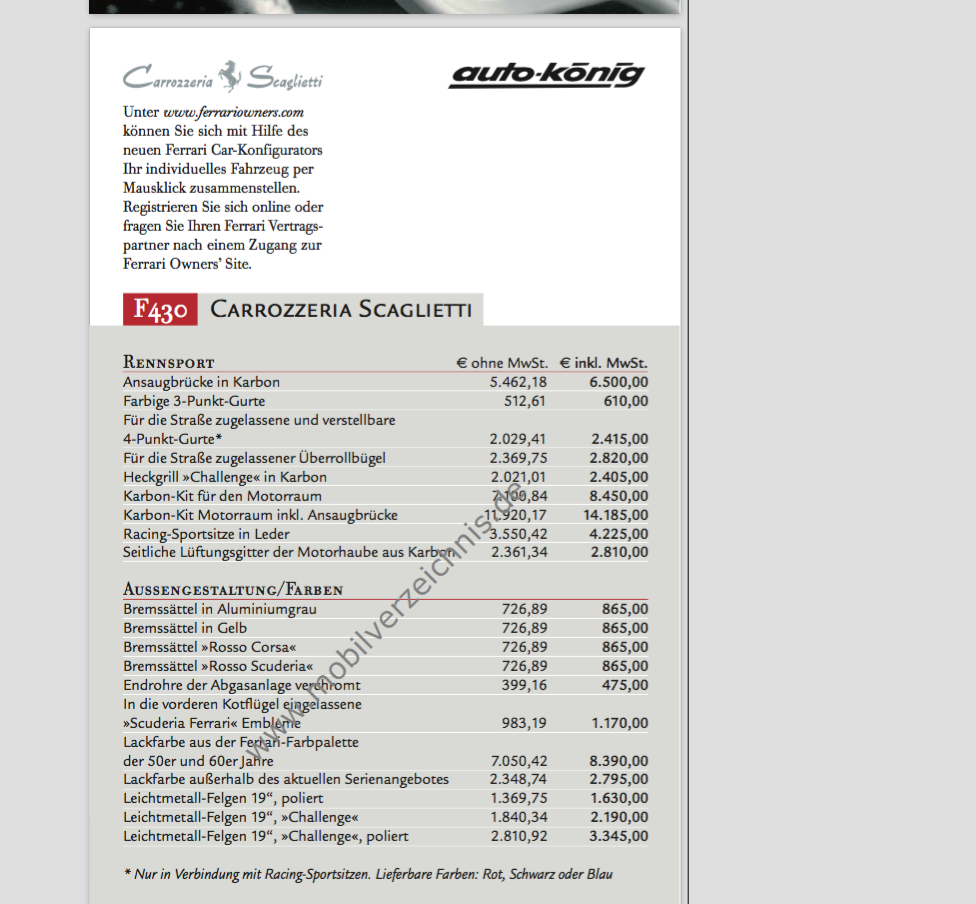 Auschnitt aus der Preisliste 2008
