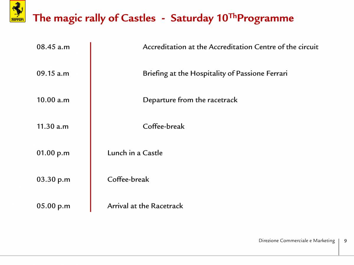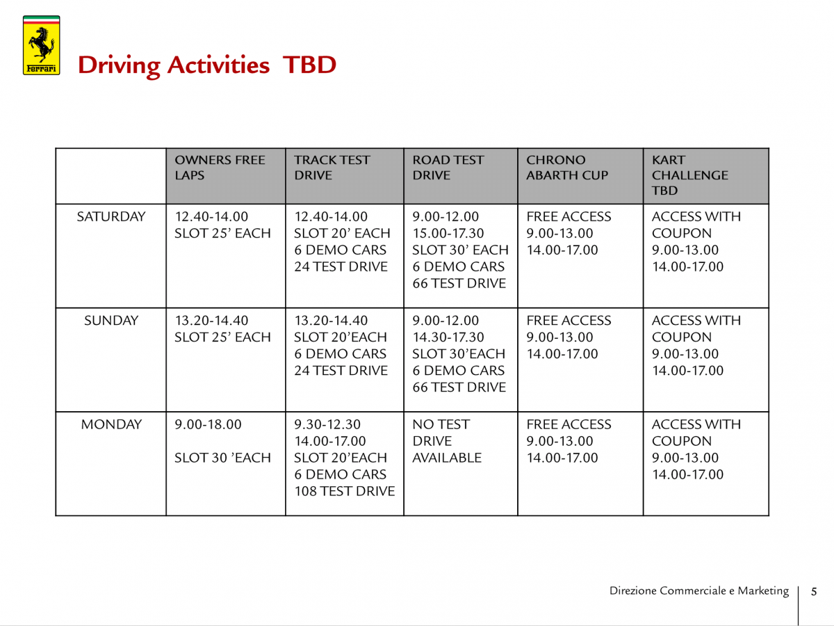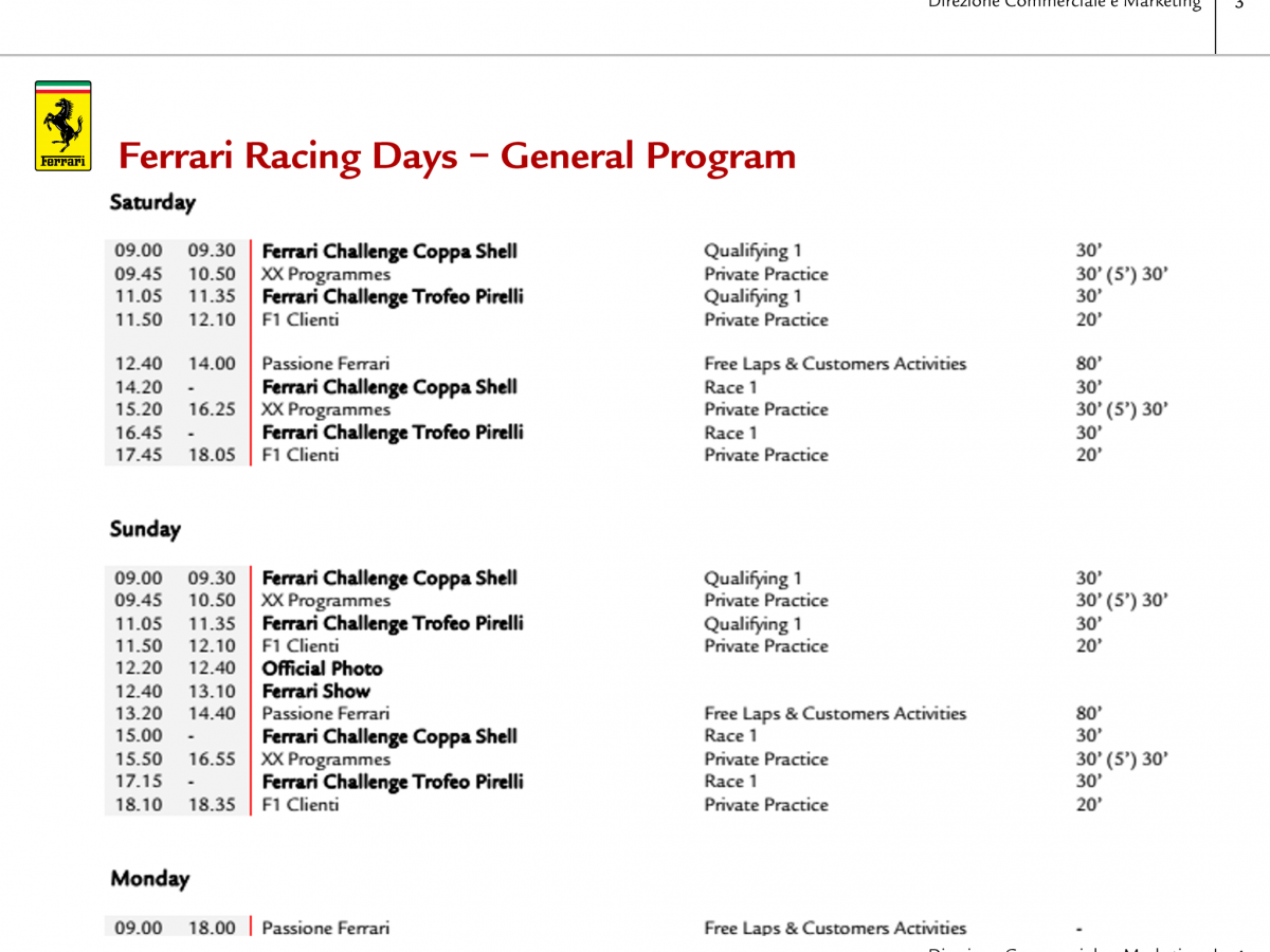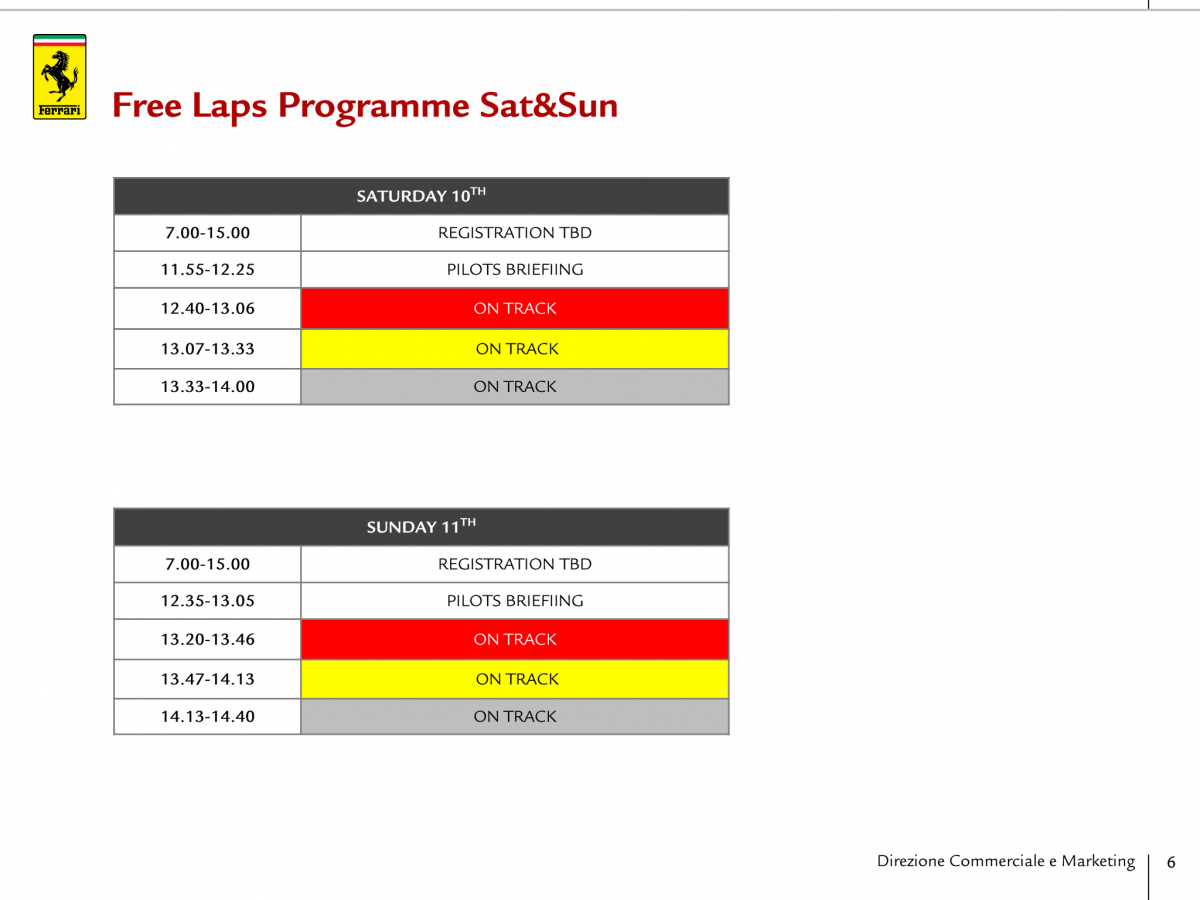 Wir haben das owners driving package gebucht und werden mit dem 599er hinfahren. Anbei ein paar Ausschnitte aus dem Programm für Interessierte: