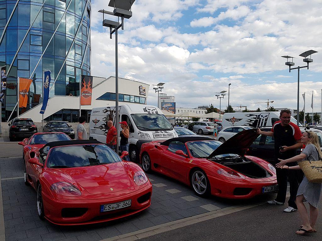 Mittagessen, kühle Getränke und eine schöne Aussicht. Parkplätze sind dort immer genügend vorhanden und da können wir auch ziemlich sicher alle nebeneinander stehen. Danach Fahrt in die Motorworld, aber nicht direkt über die A81. 8-)