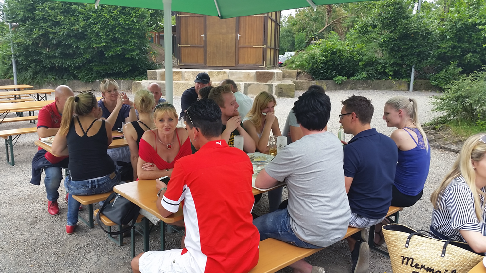 Auch hier habe ich einen Tisch für 18 Personen reserviert auf der Terrasse. Noch eine Kleinigkeit essen und nette Gespräche...