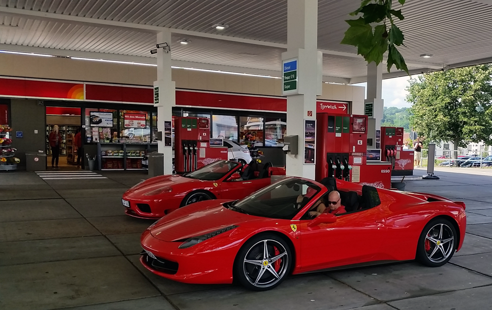 Falls ihr eine weitere Anreise habt, gibt es kurz nach Abfahrt noch eine große Esso Tankstelle. Da können wir dann noch tanken. Dann Fahrt über die idyllische Straße nach Burg Stettenfels.
