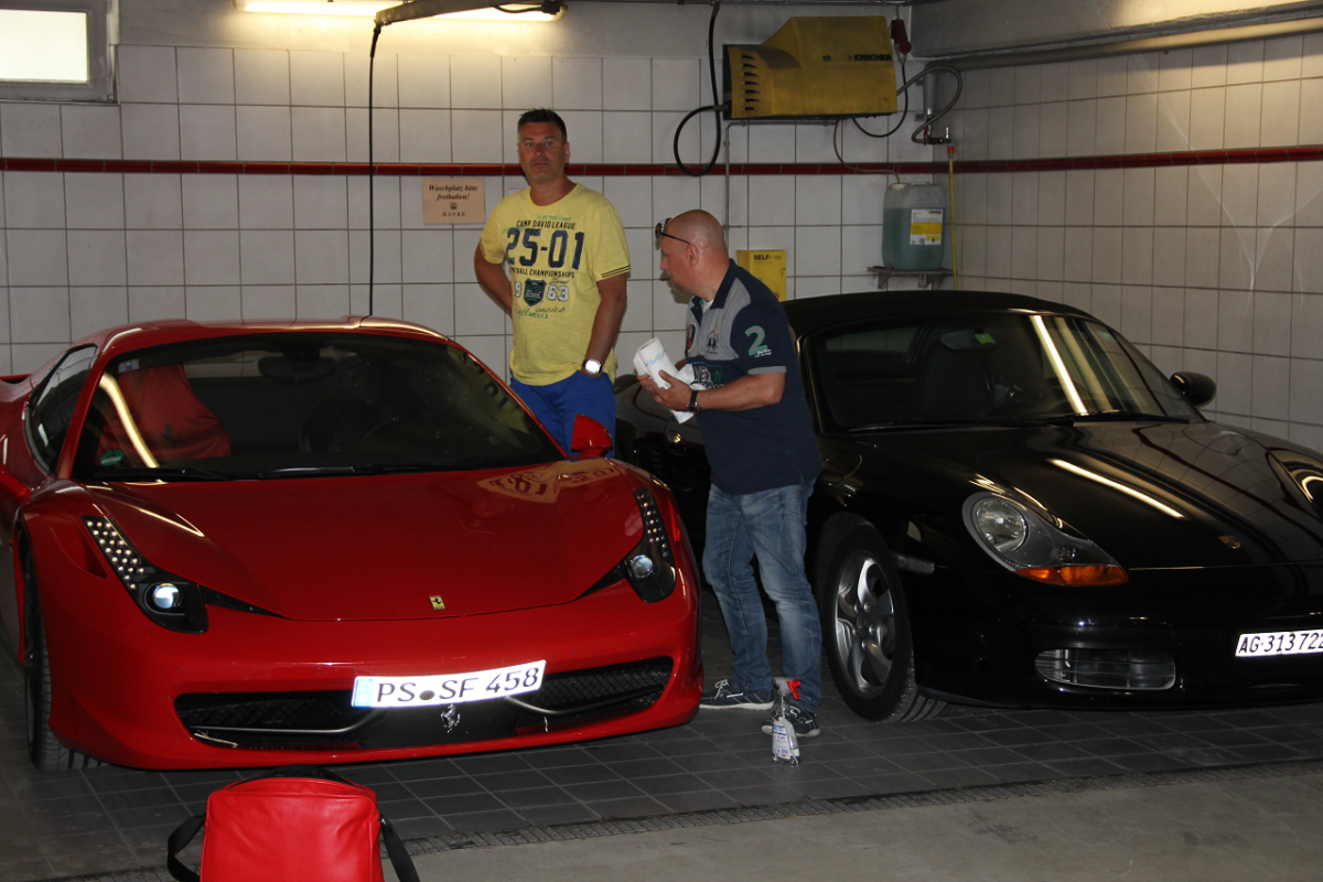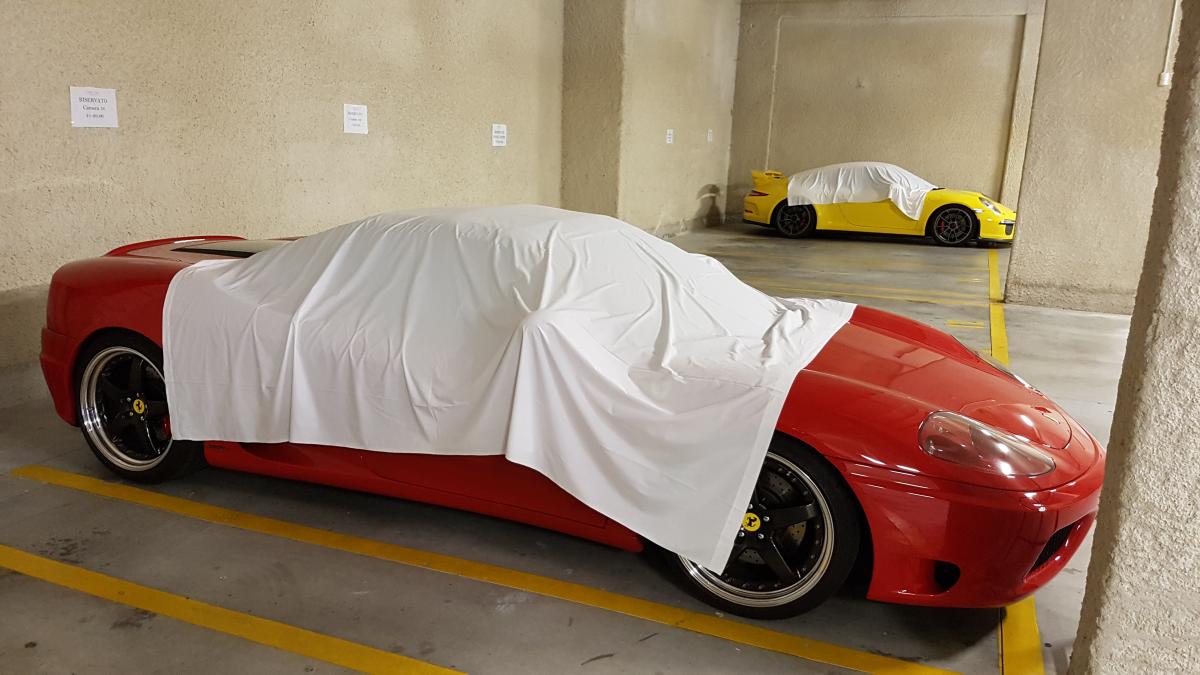 "Passion" wäre für einen "Verro Italiano" aber,  so ein Tuch nur über einen Ferrari zu legen. ;-) Wenn auch der gelbe Porsche eins hat, bekommt vermutlich jedes Auto so ein Tuch... ;)