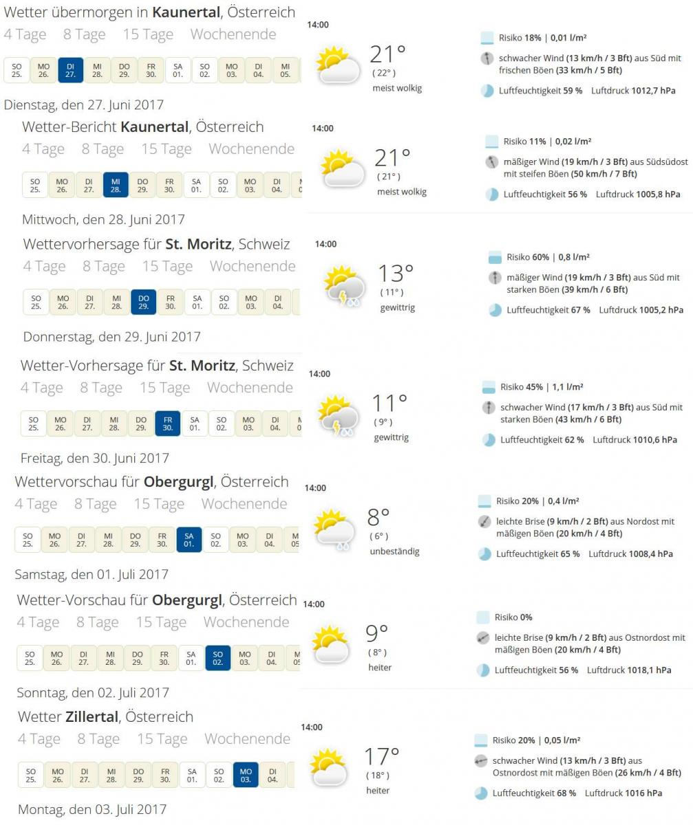 Also, ich habe mal die Wettervorhersage ein wenig strukturiert: (Quelle: http://www.wetter.de)