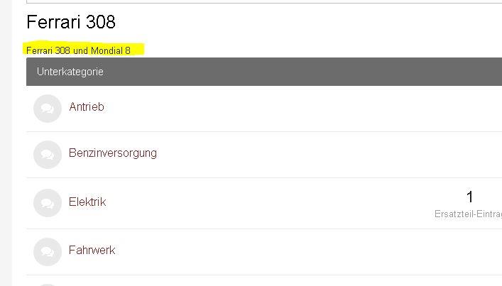 In dem Wiki Menu wird Ferrari 308 und Mondial 8 ja  zusammen gefasst, weis nicht ob das auf Dauer passt, aber das wissen die Ferrai Experten sicher besser ob es da mehr Gleichteile als verschiedene gibt
