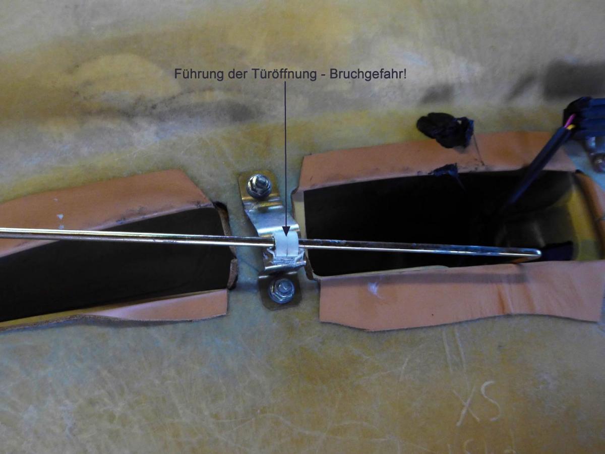 Ich habe auch das kleine Plastikteil markiert, welches bruchgefährdet ist und zur Dysfunktion der Türöffnung führen kann.