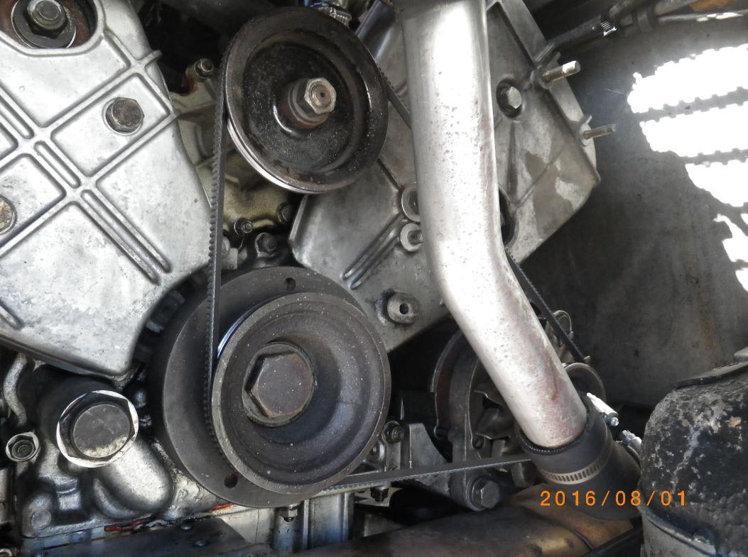 Da die Wasserpumpe auf dem gleichen Riemen läuft, kann ich das nicht ohne Riemen testen, höchstens kurz laufen lassen.