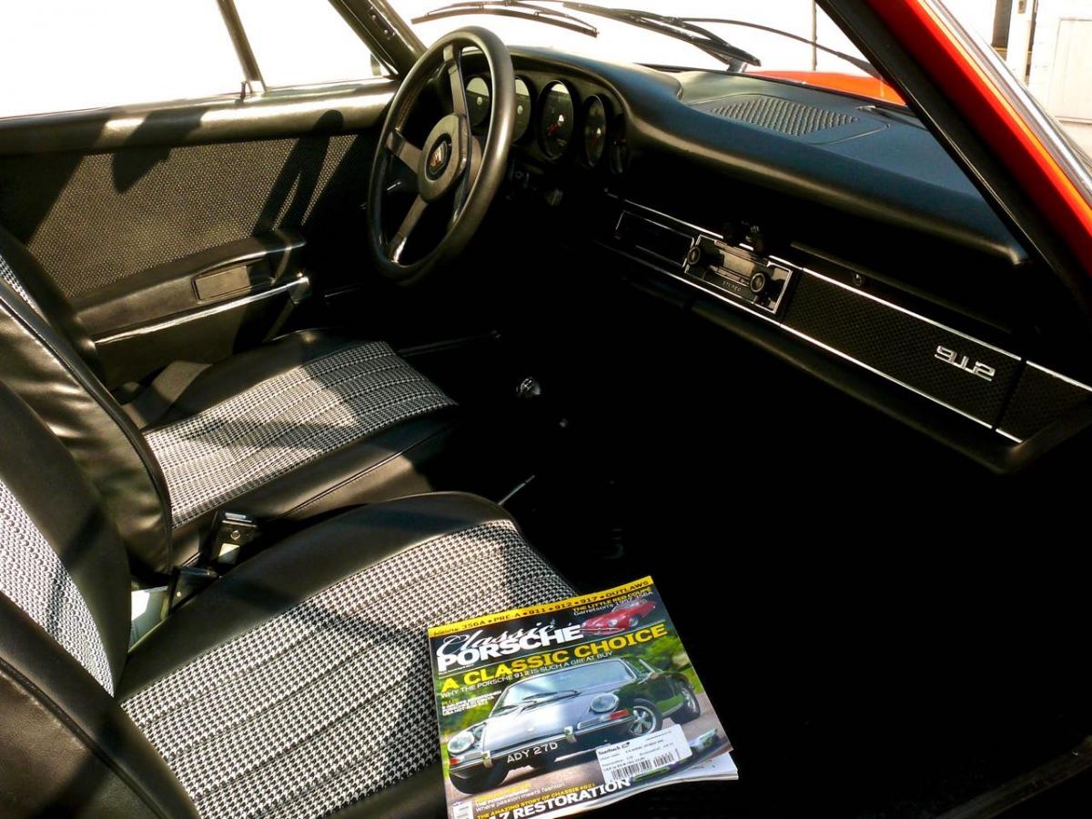 Die ersten Neunelfer, die ab 1964 ausgeliefert wurden, hatten allesamt eine Holztäfelung. Hier in Kombination mit einem Pepita-Stoffbezug: