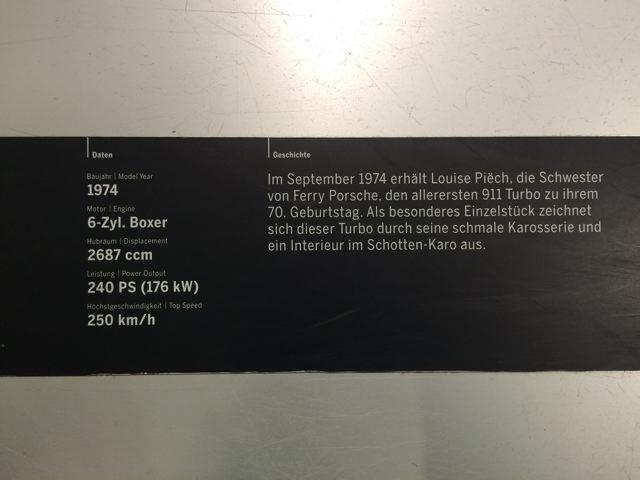 Der allererste Turbo, der Privatwagen von Louise Piech, noch mit schmaler Karosserie und einem absolut hinreißendem Interieur, dessen Karomuster sich dann auch noch im Porsche-Schriftzug an der Seite wiederfindet, ein für mich extrem begehrenswertes Auto, sollte mir jemals ein silbernes Coupé zulaufen, werde ich mir eine Replik dieses Wagens daraus bauen lassen: