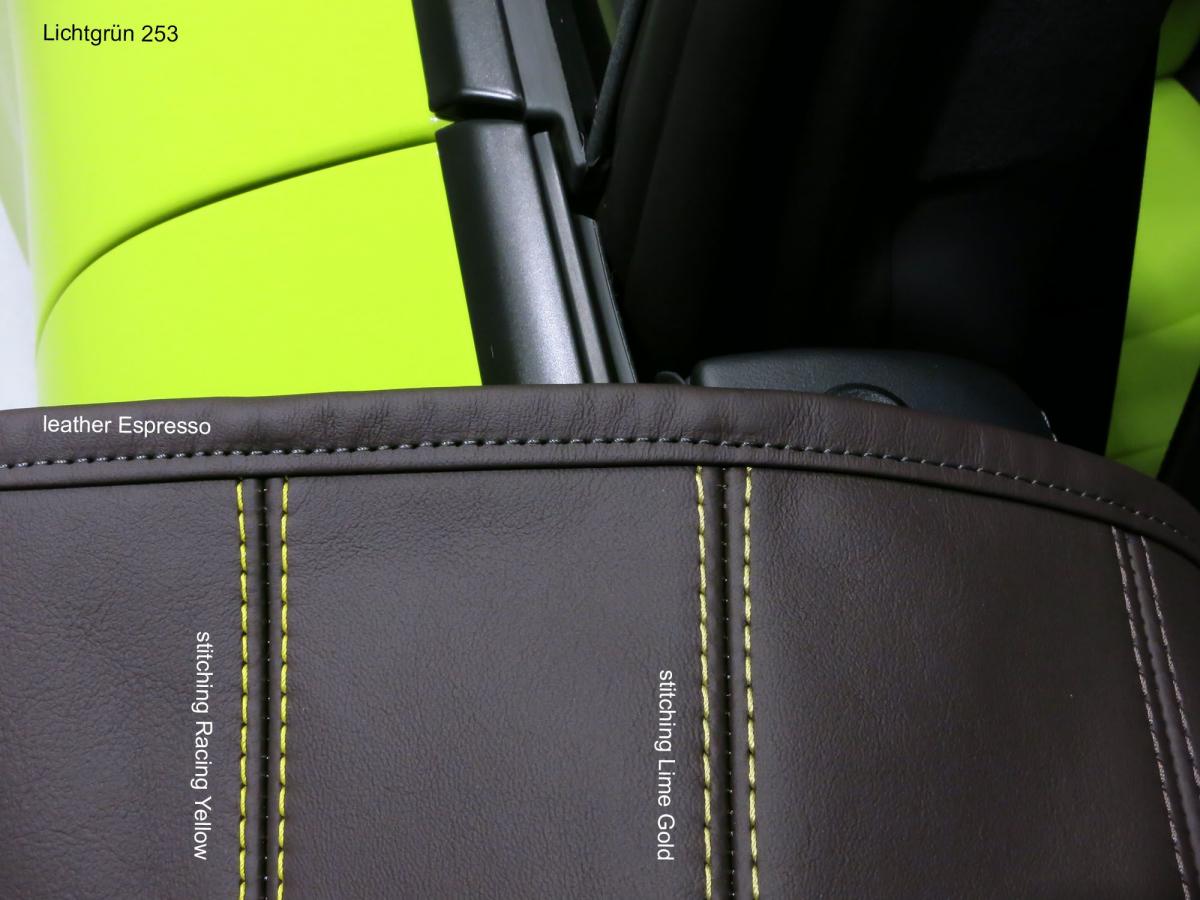 Besonders beliebt scheint die Abstimmung der Ziernähte auf die Farbe des Außenlacks zu sein: