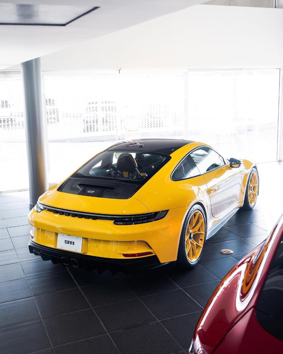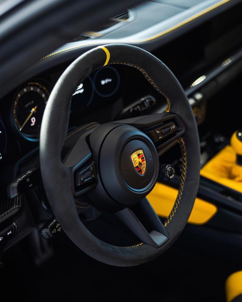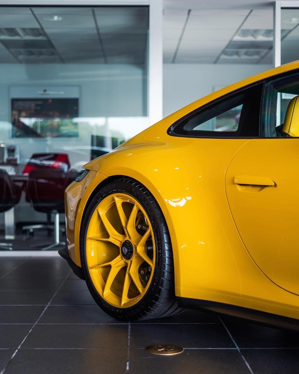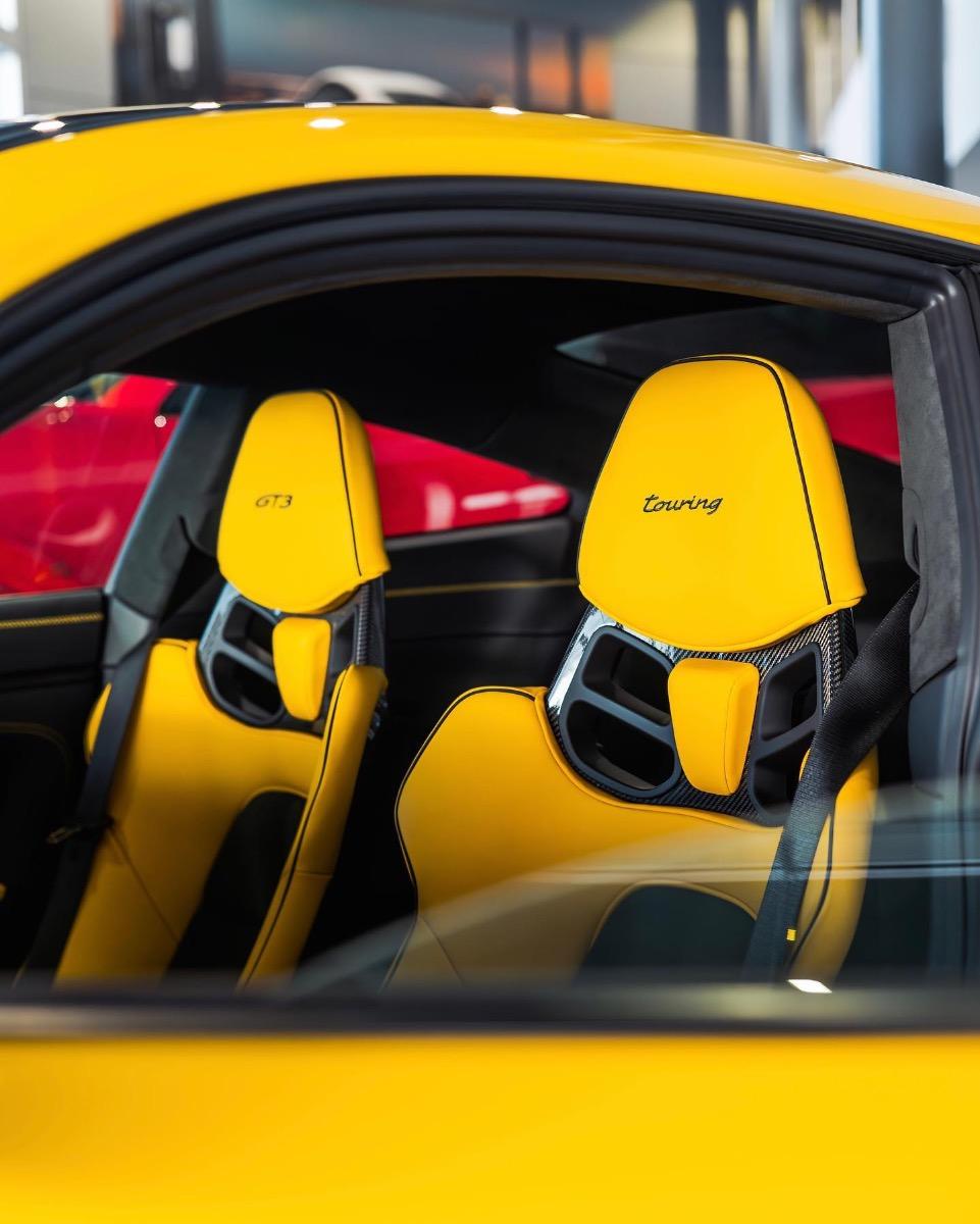 Beim 997 noch eine Standardfarbe, beim GT3 992 (Touring) ist speedgelb PTS. Auch im Interieur speedgelb.
