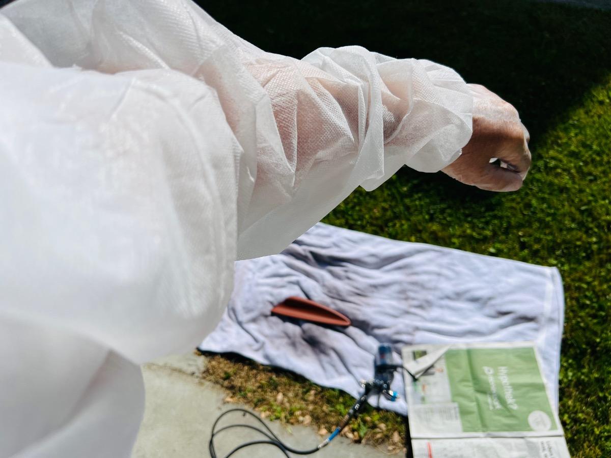 Bei solchen Kleinteilen welche man beim Sprühen gerne in der Hand hält und drehen kann ist es ratsam etwas an Schutz anzulegen.
