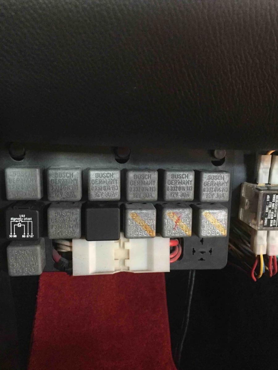 Erstmal habe ich nun festgestellt, dass die Anordnung meiner Relais eine andere als die im Werkstatthandbuch ist. Kennt die jemand so wie sie bei mir ist? Problem: dort ist gar kein Relais für den Hazard Switch eingetragen (Bild der Relaisanordnung anbei - ohne Beschreibung). Wo ist es also?