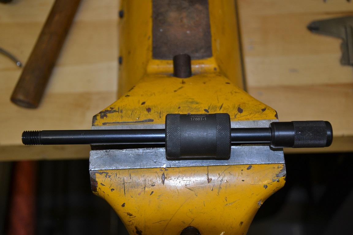 Vermutlich (meine Vermutung, werde ich testen und berichten) kann man an Stelle des Spezialwerkzeuges auch einen Kugellager-Auszieher verwenden. Bei diesem werden die beiden Arme zwischen die Kugellagerschalen eingeklinkt und der Auszieher wirkt dann auf das Wellenende. Der Effekt ist der Gleiche, wie beim Spezialwerkzeug, die Welle wird aus der inneren Schale ausgepresst. Vermutlich muss das bei beiden Wellen dann wechselseitig gemacht werden. Ich werde berichten und habe hoffentlich die Geduld, auch Fotos zu machen. :D