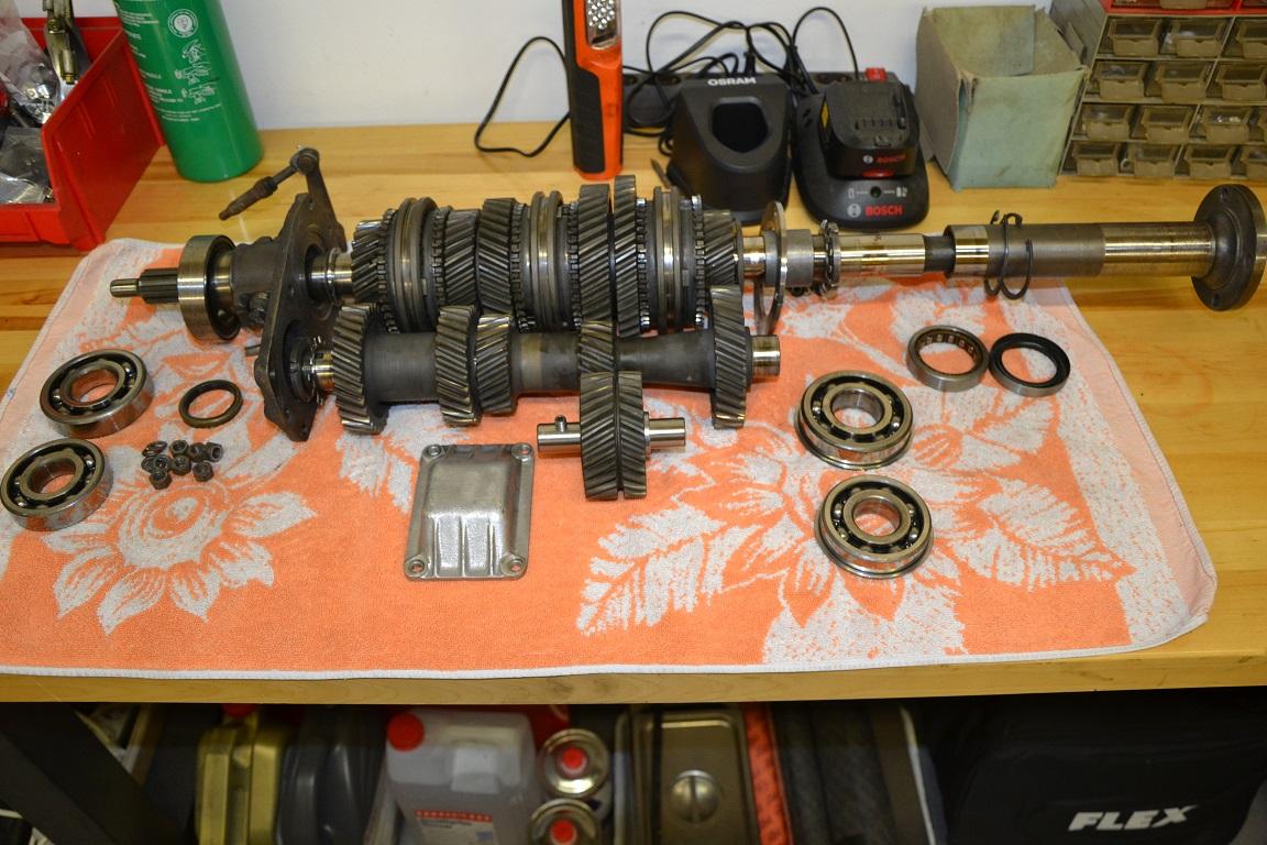 Ist gar nicht so "mutig", wenn man erst schaut und nachdenkt, wie das alles auseinander gehen könnte und so nichts kaputt macht. Und beim Zerlegen der Hauptwelle jedes abgezogene Teil auf einer Stange o.ä. in der richtigen Position auffädelt. So kann man eigentlich nichts falsch machen und weiss bei Zusammenbau wie das alles wieder zusammen gehört.