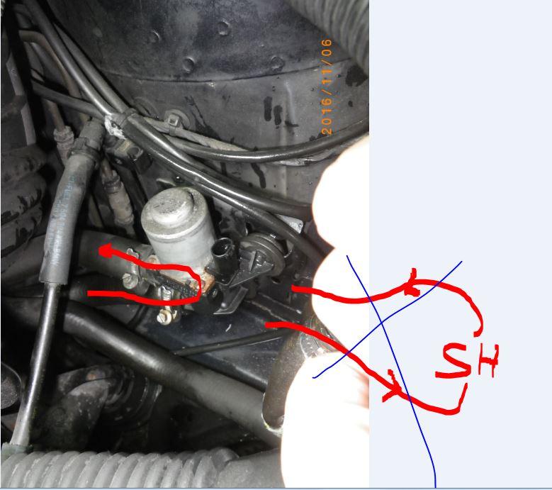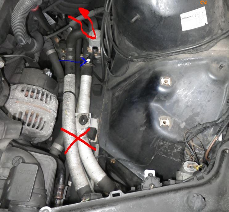 Also die kalte Zulaufleitung zur Standheizung direkt in das Heizungsventil. Die ist ja auch genau dort an der blauen Stelle unterbrochen, als wollte die mal da rein.