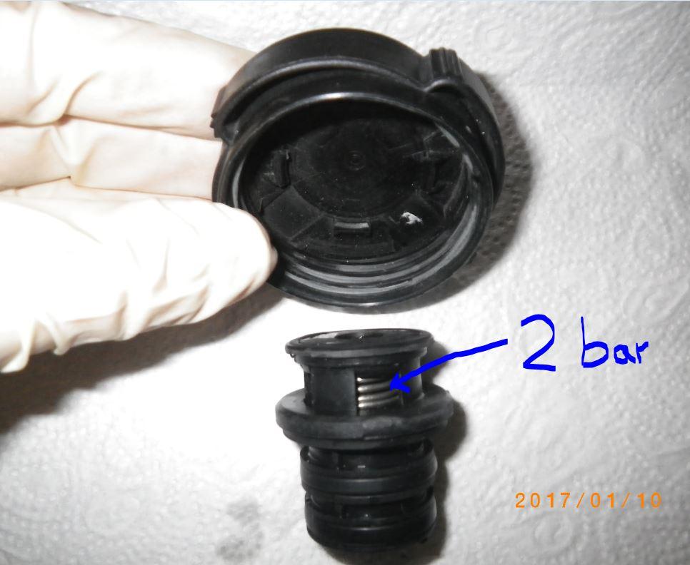 gibts nicht. Es sieht so aus, als wäre der Kühlerverschlussdeckel defekt. Konnte da durchblasen. Also über die 3. Dichtung hinweg. Der Innenbereich wackelt, aber das kann auch normal sein als Ausgleich.