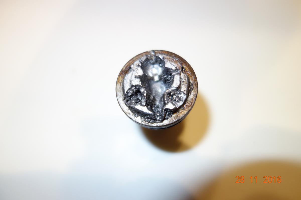 Jetzt mußte ein Abdruck einer noch intakten Schraube her. Nichts professionelles, einfach nur um die kleinen Aussparungen an der Facom Nuss zu markieren und diese entsprechend zurechtzuschleifen.