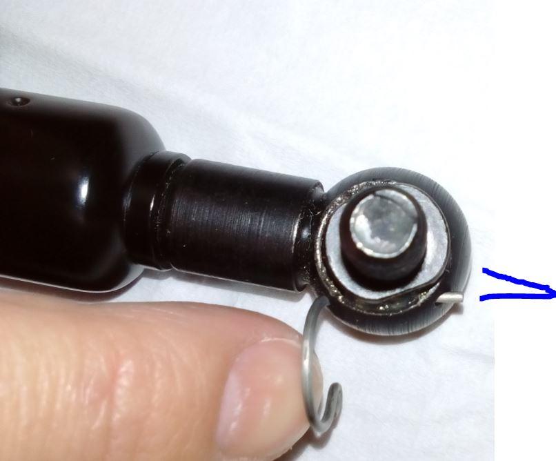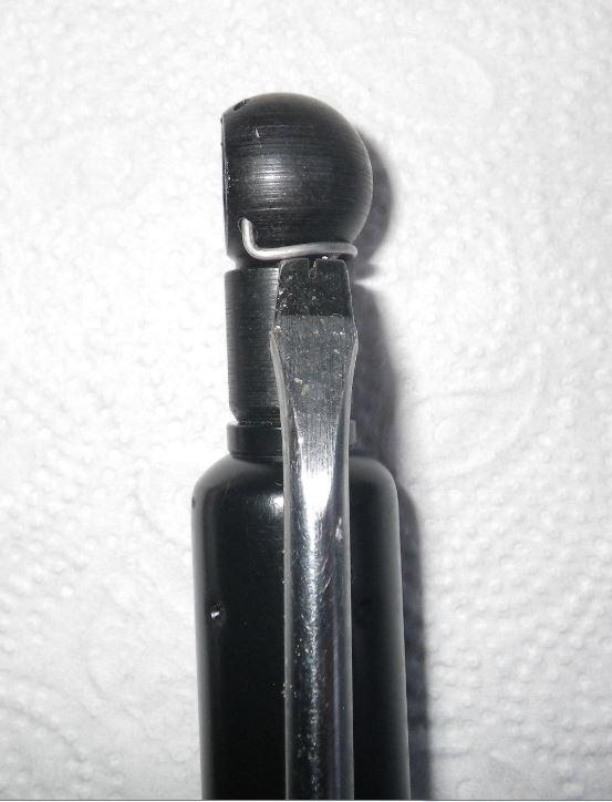Damit soll dann die Sicherungsfeder entriegelt werden und die Gasdruckfeder aus der Pfanne rausgeploppt werden. Später auch die Sicherungsfeder wieder aufgeschoben werden.