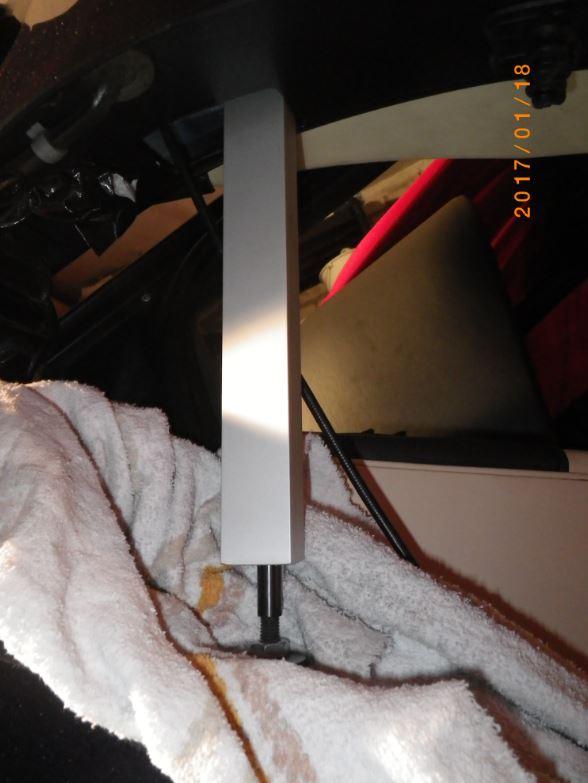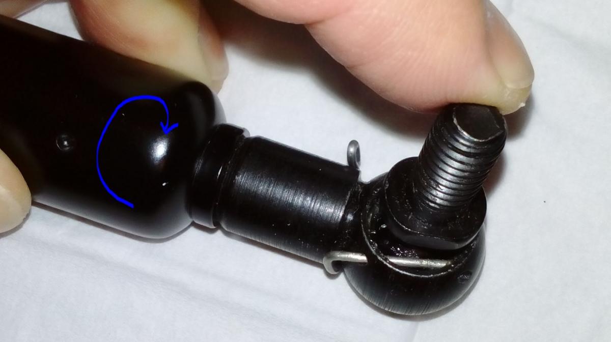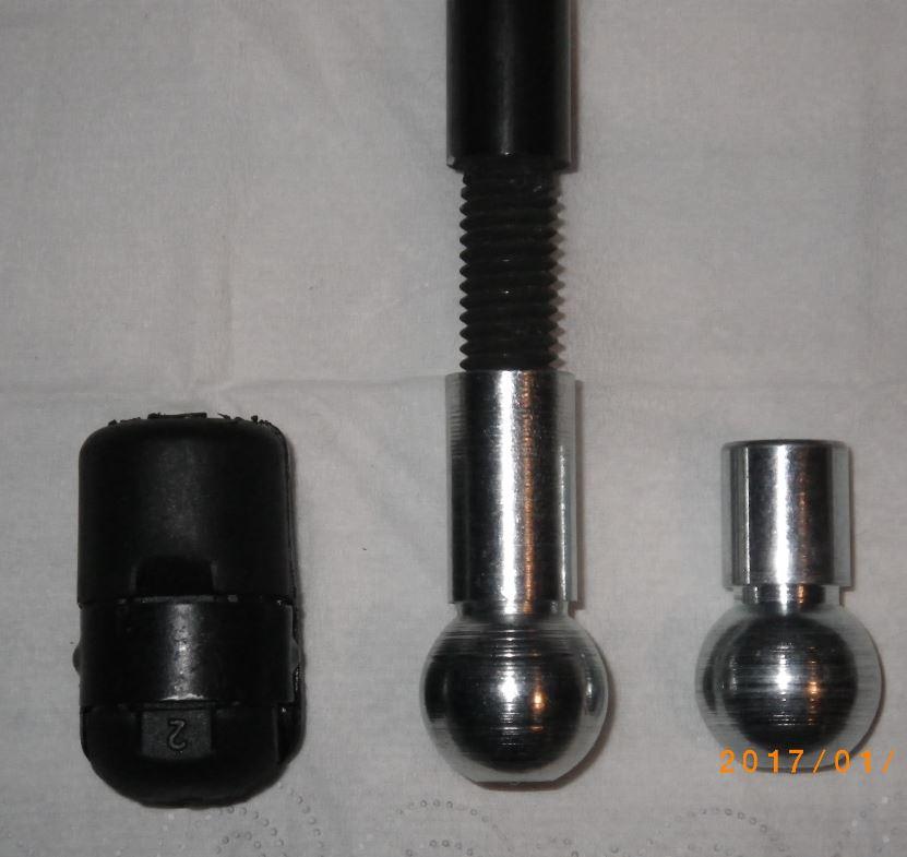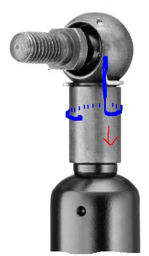 hab die Kugelpfanne einfach mal ohne Kontern drangeschraubt und die Länge dabei eingestellt. Den Gewindebereich temporär mit einem Zentimeter Vakuumschlauch abgedeckt: