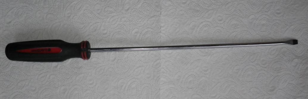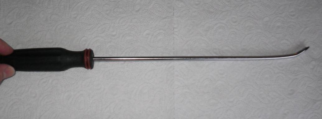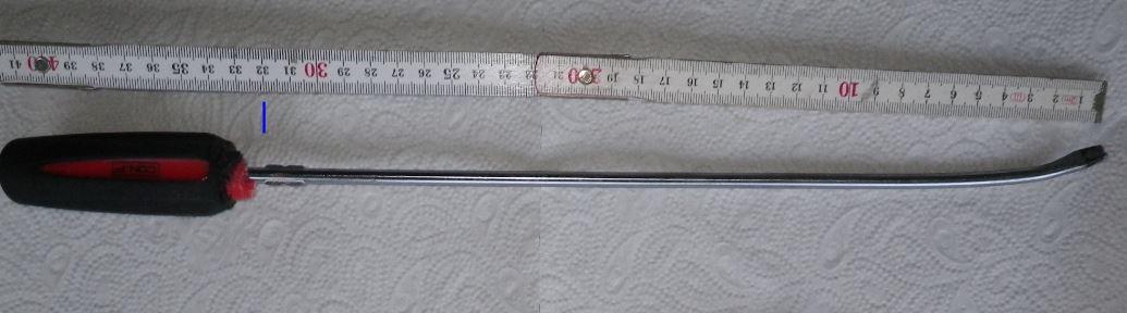 Schimpfwortliste ist erstellt. Das Werkzeug auch. Einfacher langer Schraubenzieher, vorne abgebogen: