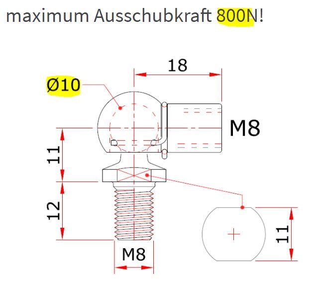 Die Kugel auf dieser Seite ist Durchmesser 10 (statt 13). Für diesen Durchmesser gibt es sogar Stahlpfannen, die nur 800 N dürfen.