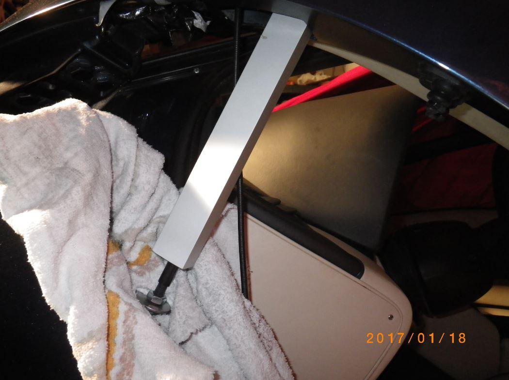 Dann Gurt entfernt und mit Al-Winkelschiene reingeploppt. Direkt an der Gasfeder soll man seitlich nicht drücken: