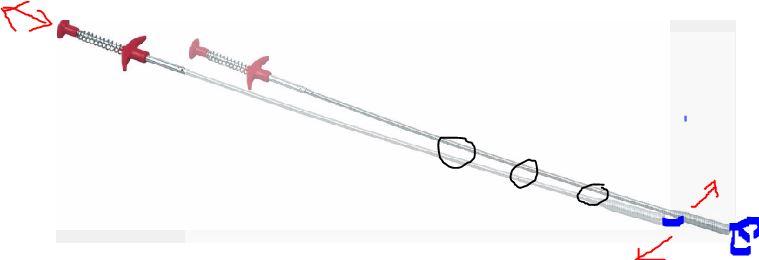 Die lassen sich verlängern am blauen Pfeil, aber der Griff ist zu dick und stört.