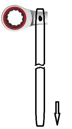 Es gibt ja die Proxxon Rotary-Ratschen in verschiedenen Größen. Genau das Funktionsprinzip, aber in superschlank. Also ganz geringe Höhe H und ohne Griff, da hier über einen halben Meter nur eine Stange sein soll.