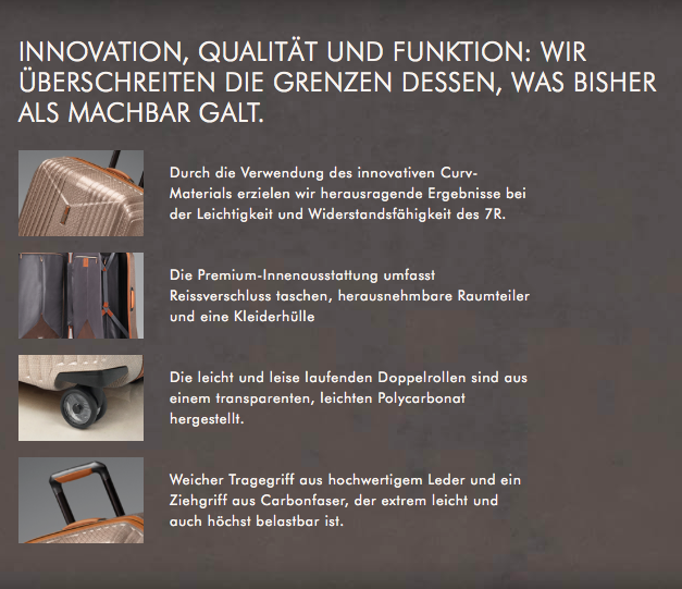 Grösseres Gepäck gibt es nur für Ferien. Aber auch da Rimowa. Die haben die besten Rollen.:-))!