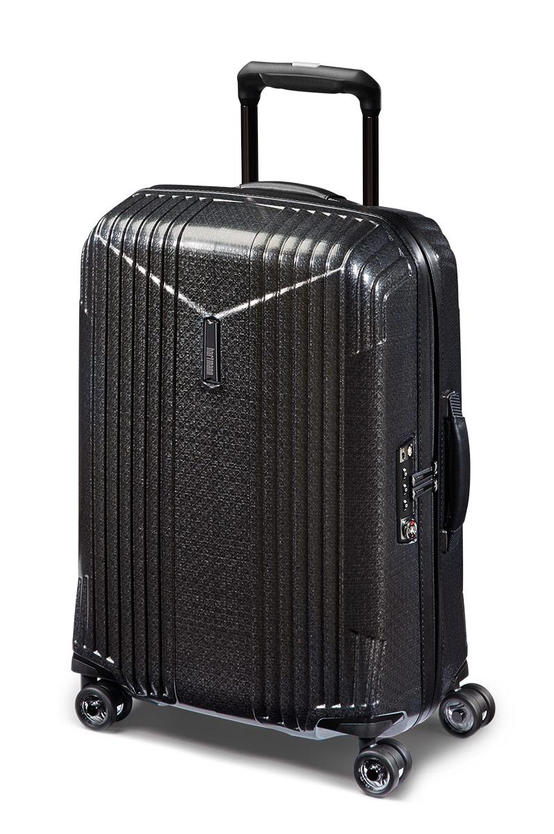 meiner sieht so aus und hat auch ein sehr durchdachtes innenleben mit fächern, seitentrennteilen und einem hemdenfach. das material hat carbonoptik, heisst aber anders. nur der griff mit stange ist aus carbon. es lässt sich sogar darauf rumhüpfen, verformt sich und geht rückstandsfrei in die urform zurück.