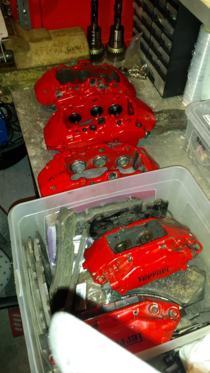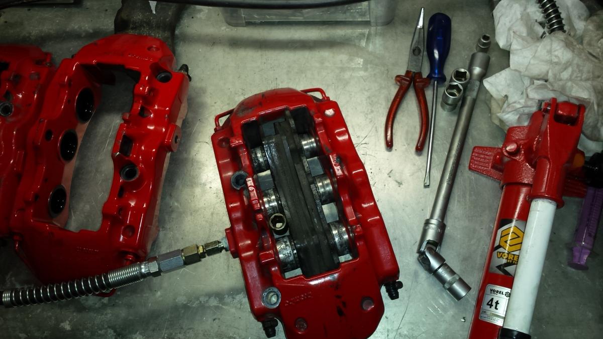 Alle lager an den federbeinen,Kugelgelenke dreieckslenker,stahlflexbremsleitungen,neue Kolben in den 6 kolbensätteln da korrodiert,rückrüstung auf stradale auspuff,größere kühler wegen dem novitec.teile von hill und superformance sind schon da und dann jetzt dieser Supergau.das macht die Planung etwas knapp.