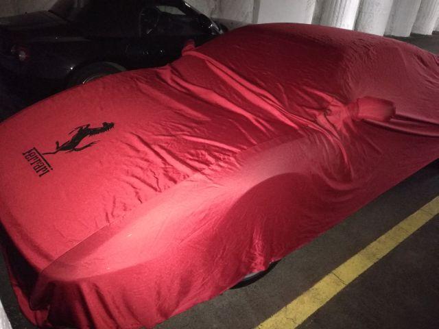Im Augenblich hat es gerade -7,5° draußen, da muss ich zugeben: Ist mir doch zu kalt für allfällige Diagnose- und Reparaturversuche meinerseits. Das Auto ist jedenfalls kuscheliger eingekleidet wie ich, wie ihr auf dem Foto seht. Ich finde es ja ehrlich gesagt ein wenig peinlich, ein Cover in Rot mit dem Ferrari Logo drauf, aber ich habe dies vom fürsorglichen Vorbesitzer mitbekommen - genau so wie ein 348er Buch, eine Ferrari VHS-Videokasette(!) und einen kleinen Miniatur 348er am Aschenbecher montiert (das war mir aber wirklich zu viel des guten und habe ihn rausgenommen).