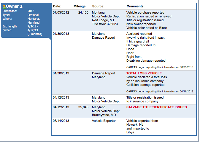 Haltet euch fest was Carfax mir ausgeworfen hat: