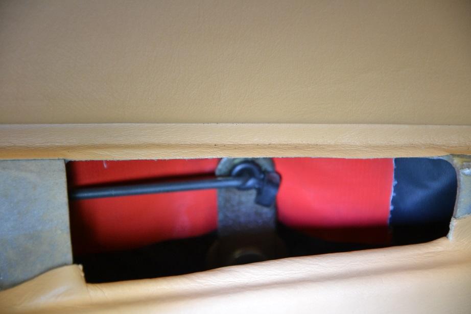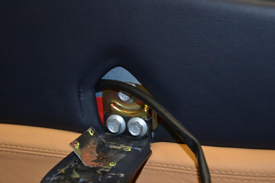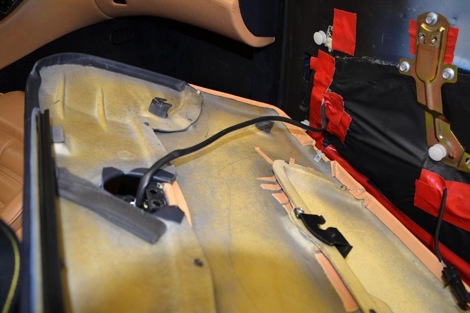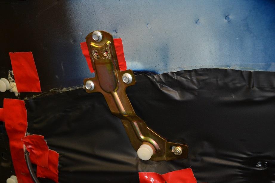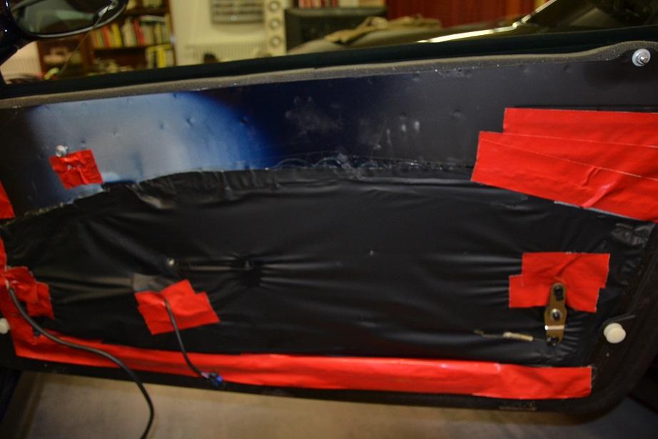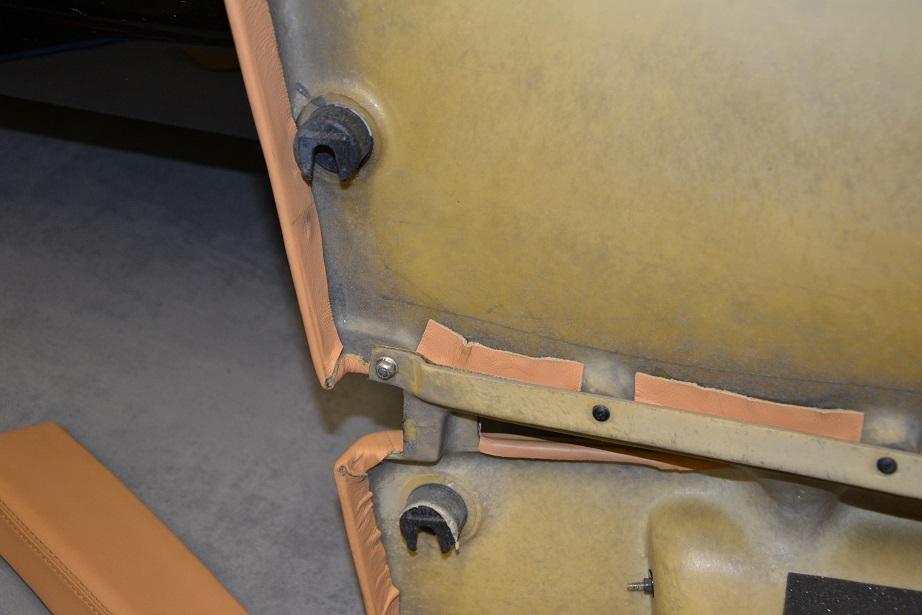 Zuerst wird die Folie wieder befestigt. Dann wird der Metallbügel angeschraubt. Man erkennt insgesamt 5 Halter für die Innenverkleidung (weiß).