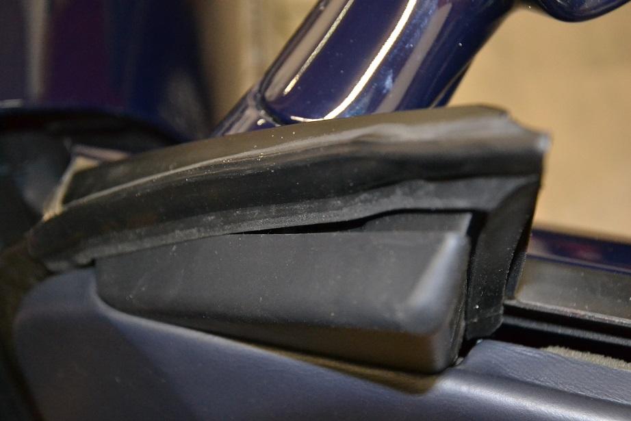 Bei der Fensterschachtdichtung ist vorne darauf zu achten, dass sie geteilt ist und die senkrechte Dichtung des Dreiecks hierin eingreift. Beachtet man das nicht, so wird die Scheibe beim Anheben nicht zwischen die Lippen der senkrechten Dichtung eingeführt, sondern läuft innen der inneren Lippe, was nicht gut ist :D