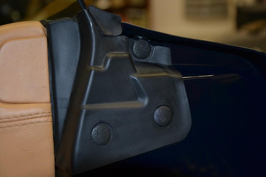 Dann wird die Fensterschachtdichtung von hinten eingeschoben. Das Endstück ist etwas fummelig unter die Verkleidung zu schieben, geht aber. Die drei Clipse sind einfach eingesteckt. Zum Ausbau hilft ein gabelförmiger Nylonhebel.