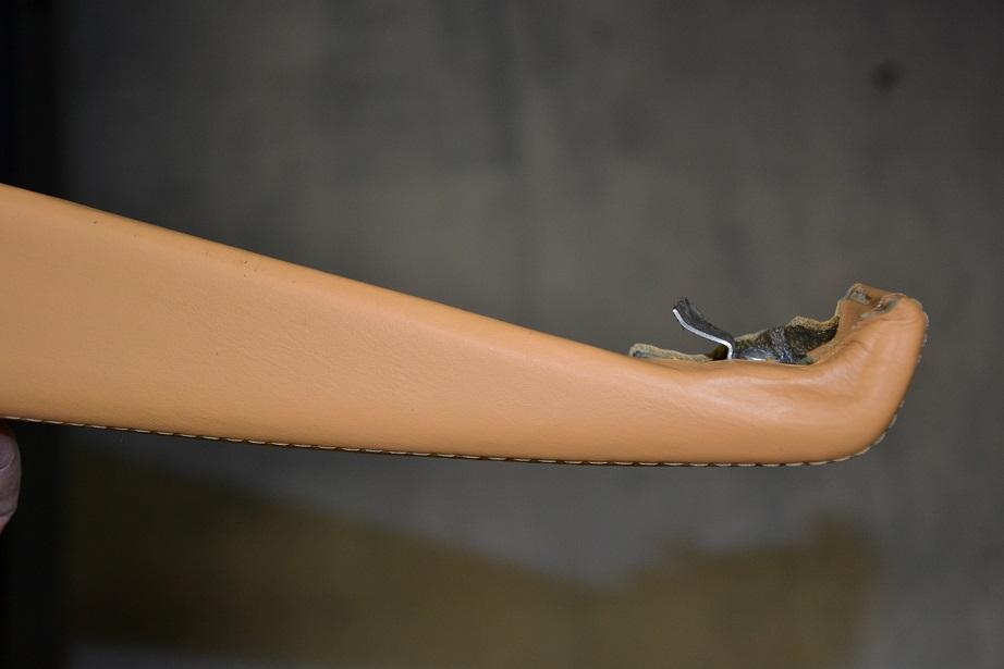 Die Armauflage ist hinten mit einem Haltebügel versehen und wird von hinten aufgeschoben. Von unten wird sie dann fest geschraubt (Gewindeschrauben).
