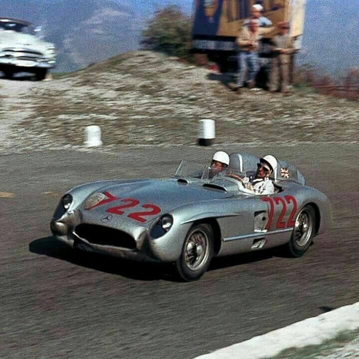 Stirling Moss bewegte den Mercedes damals dermaßen zügig durch Italien, daß er den bis heute ungebrochenen Rekord von 10.07 Stunden mit einer Durchschnittsgeschwindigkeit von 157 km/h aufstellte, der Zweitplazierte, Juan Manuel Fangio kam 32 Minuten später ins Ziel, der Drittplazierte, ein Ferrari-Pilot, kam an, als Moss und Jenkinson schon frisch geduscht und umgezogen bei Spaghetti und Weißwein ihren Sieg feierten...