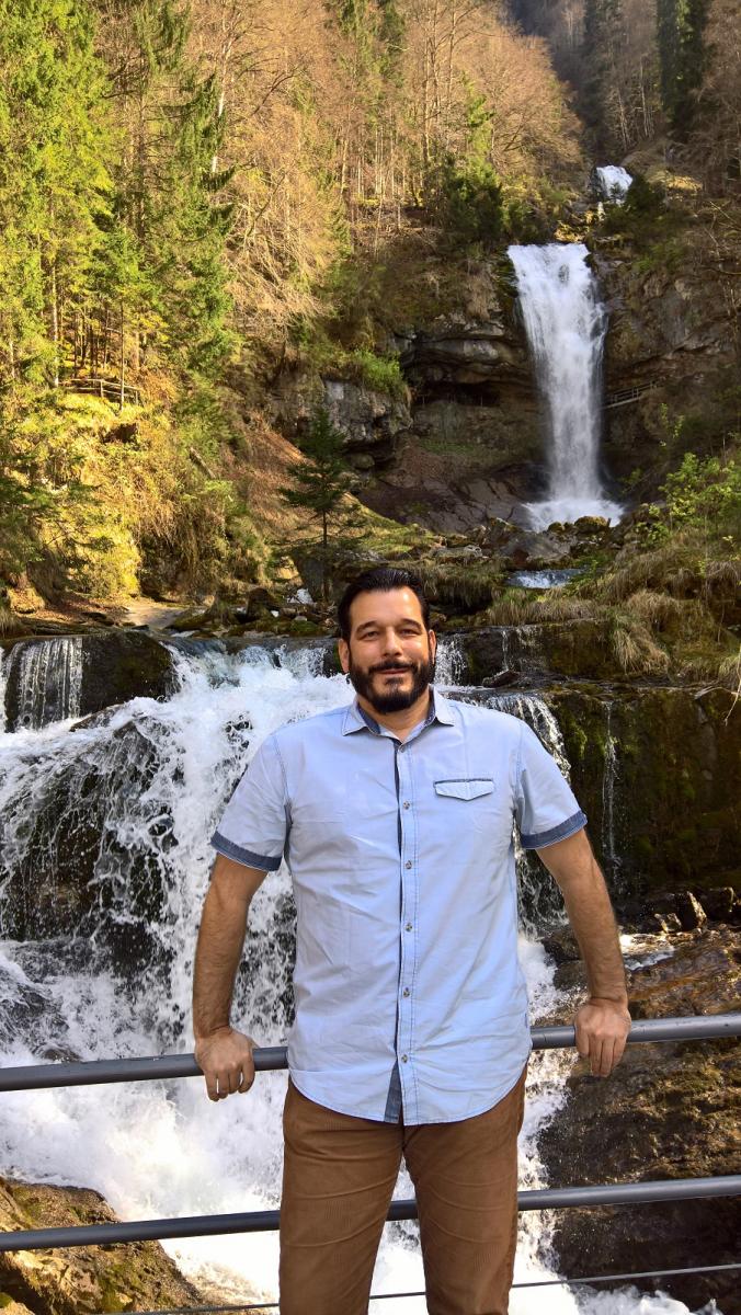 Ich musste eine Stunde warten bis ich ein Bild von mir und dem fliesenden Wasserfall machen konnte......
