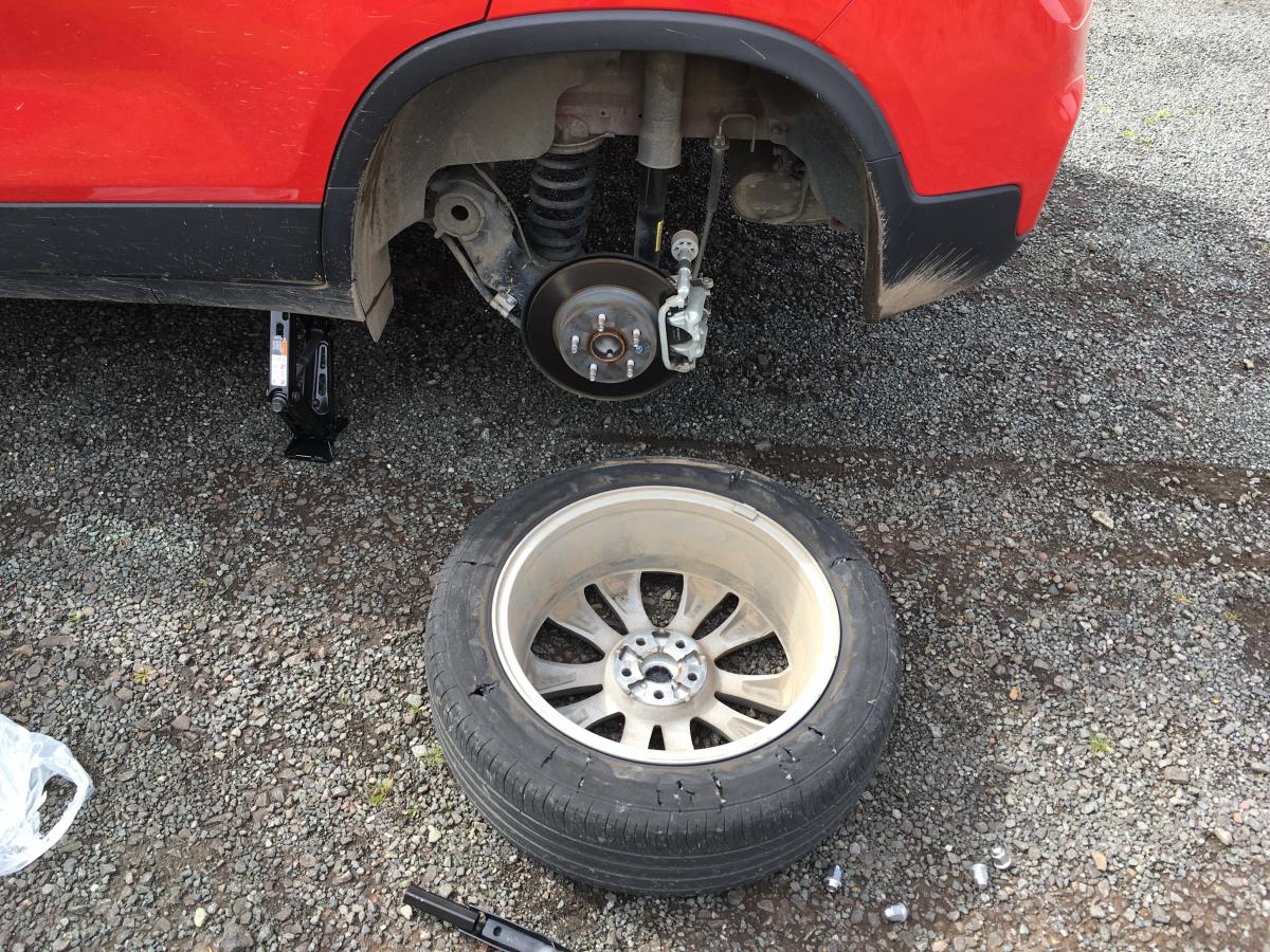 Mietwagen. Hatte hinten links bereits eine beschädigte Felge. Offensichtlich war eben nicht nur die Felge beschädigt, sondern auch der Reifen. Dass er am Ende so zerfleddert aussieht, liegt daran, dass ich noch ca. 20 km auf Schotter gefahren bin, weil ich auf dem Untergrund unmöglich das Rad wechseln konnte.