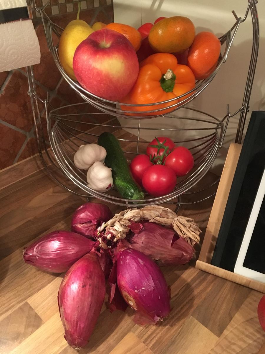 Und als wir zurück kamen lagen rote Zwiebeln aus Kalabrien im Milchkasten. :-))!