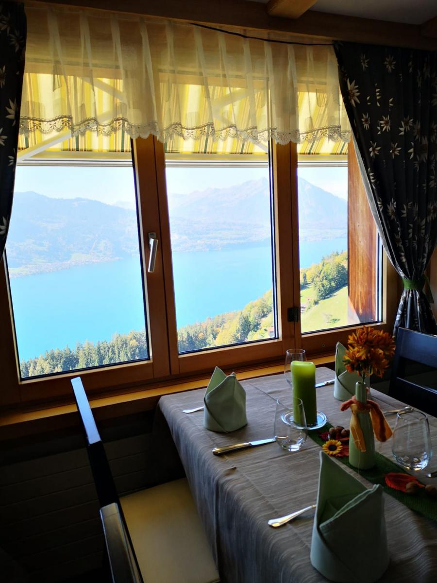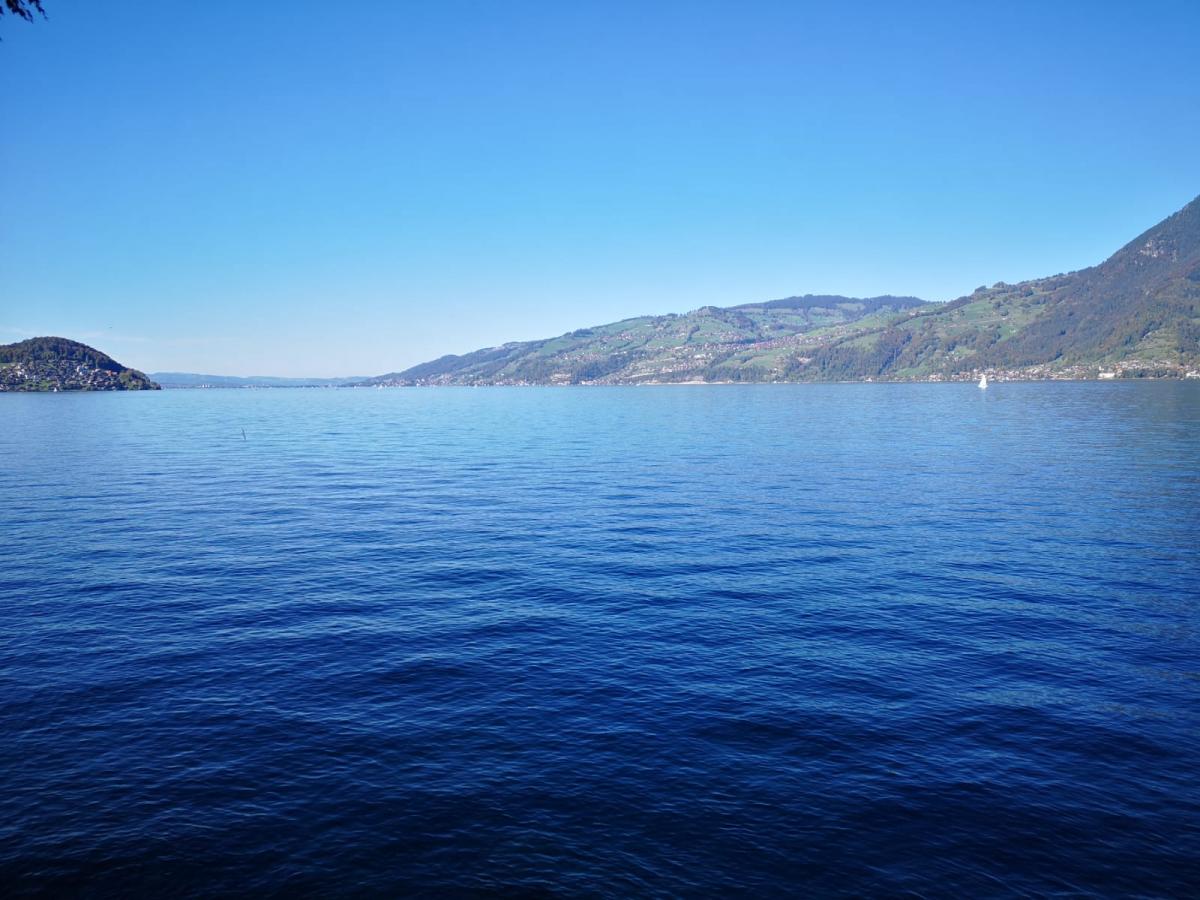 Sehr lecker und schöne Aussicht bei traumhaftem Wetter.