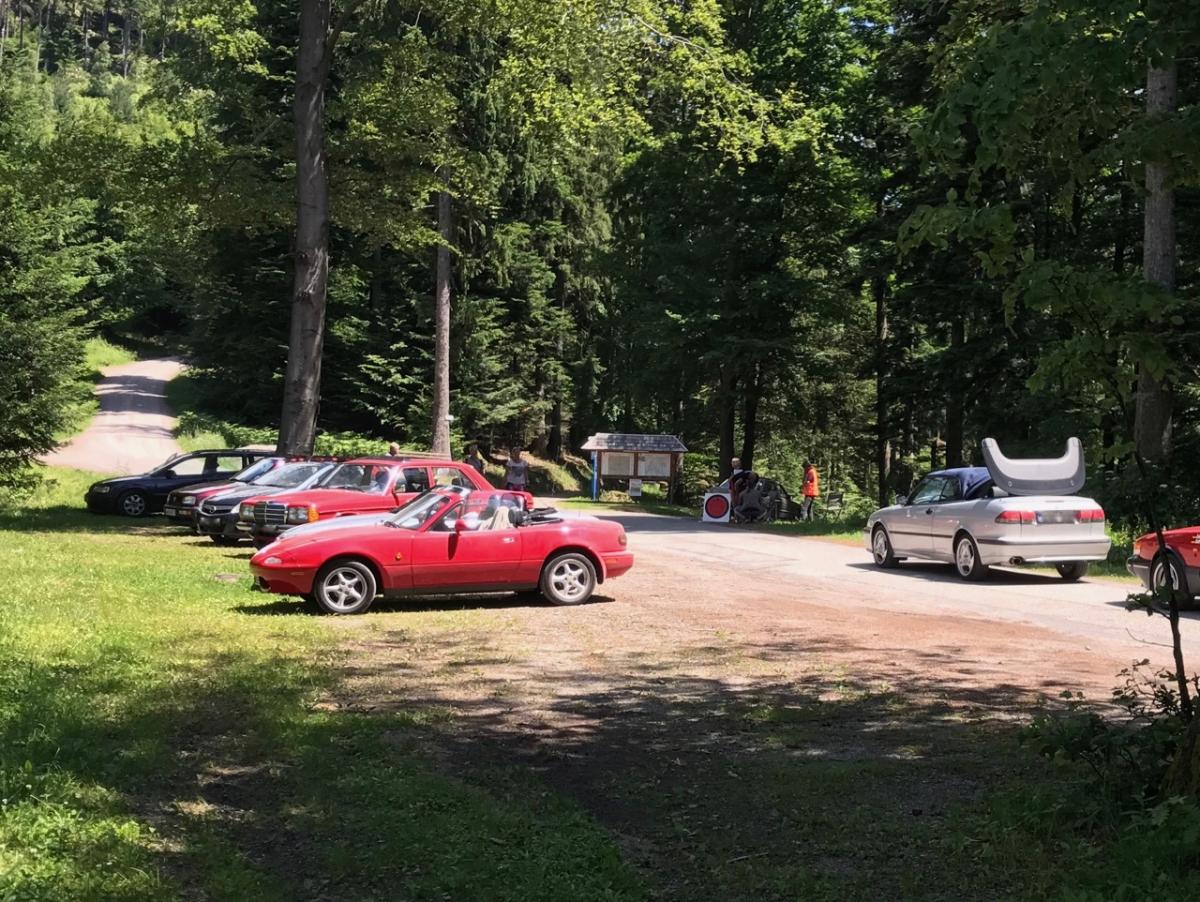 Unsere Saison- bzw. Sommereröffnung fand letztes Wochenende im Schwabenland statt. Zusammen mit gut 60 Autos wurden von Freitagabend bis Sonntagnachmittag Teile der Schwäbischen Alb und des Schwarzwaldes unsicher gemacht. War eine riesige Freude, viele z.T. seltene und schöne Autos, klasse Wetter, tolle Strecken und gutes Essen. Und der rattige Hartge-5er hat die gut 1000 Km ebenfalls überlebt:
