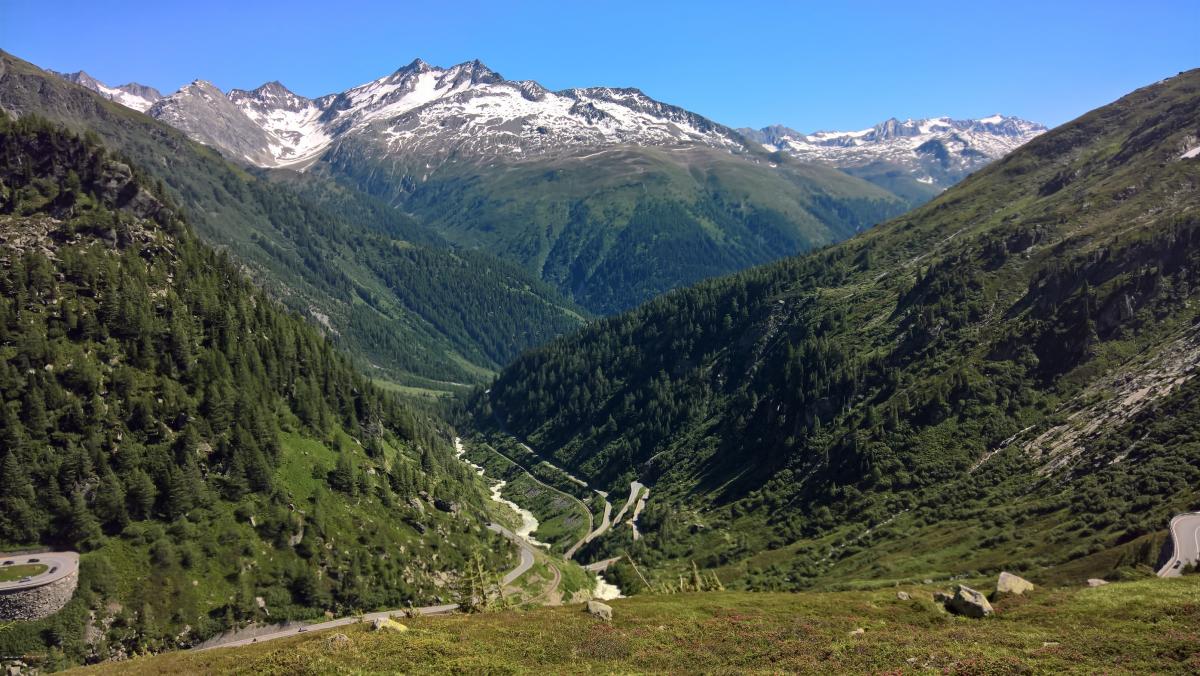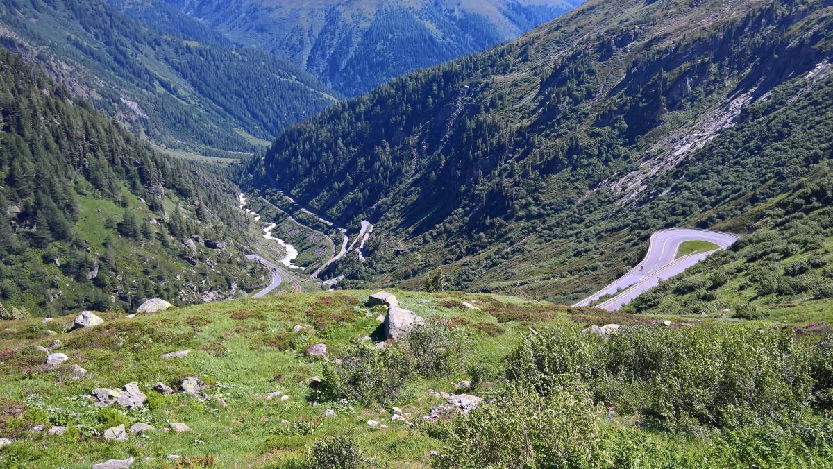 Hier ein paar Bilder vom Grimselpass, dem Autozug, alten Holzhäusern am Strassenrand......