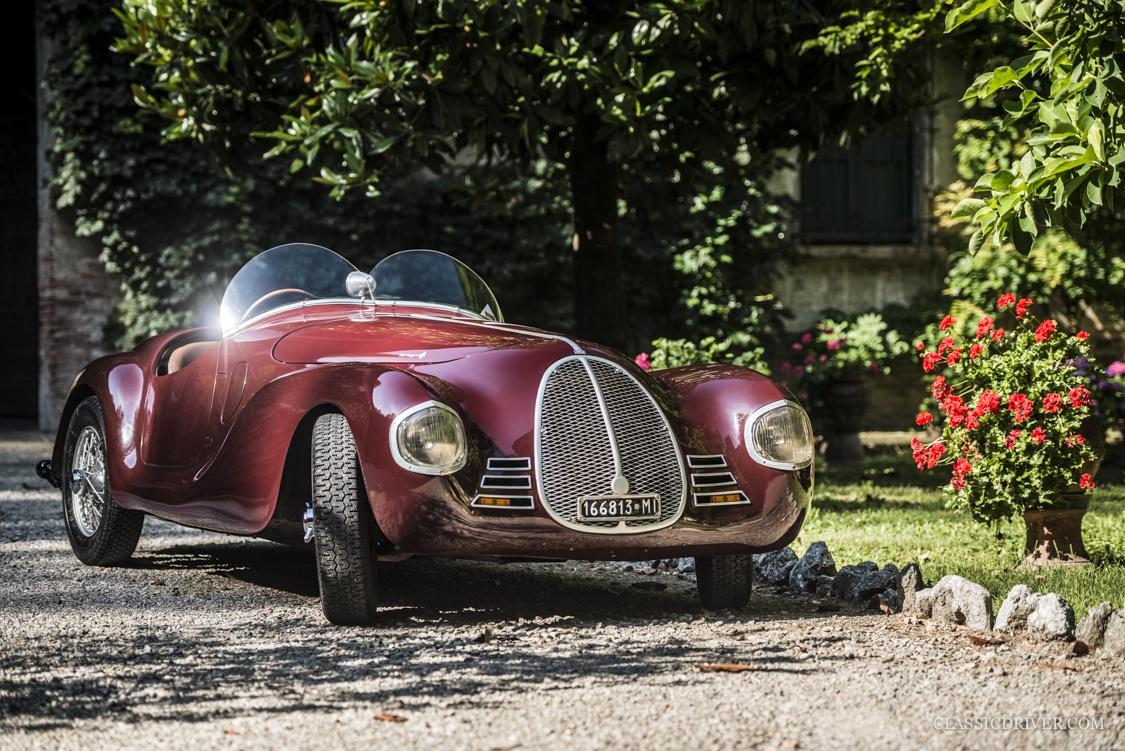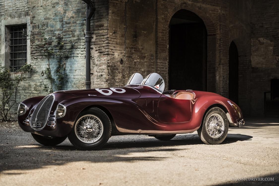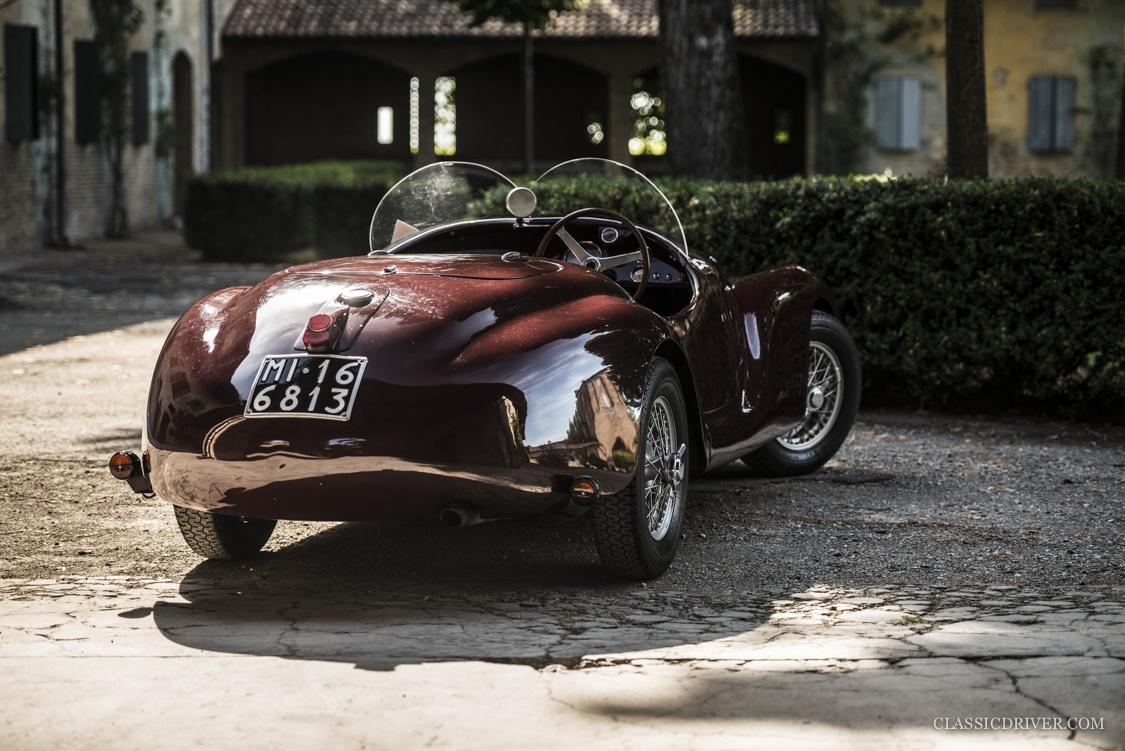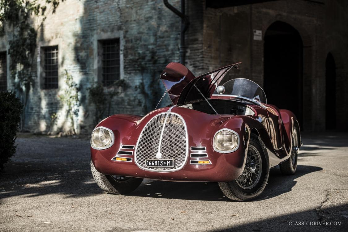 Die offene Karosserie mit dem markanten Kühlergrill und einer ultramodernen Plexiglas-Windscheibe wurde von der Carrozzeria Touring Superleggera gezeichnet, der 815 rollte auf Speichenrädern von Borrani.