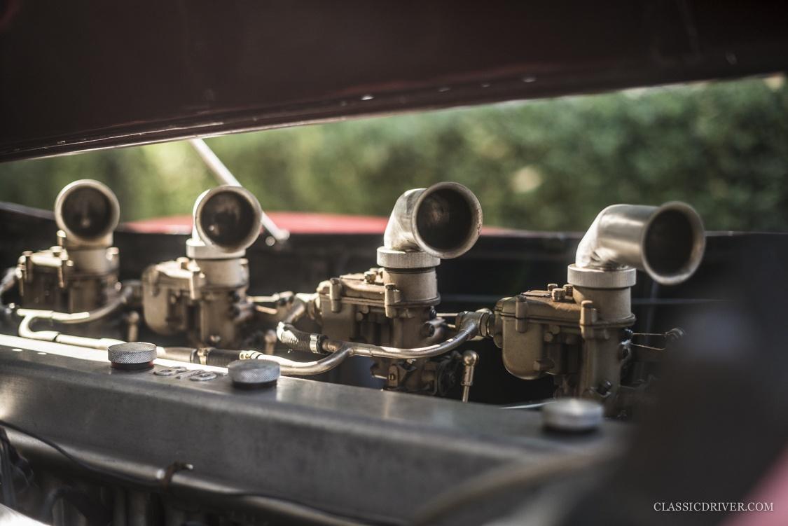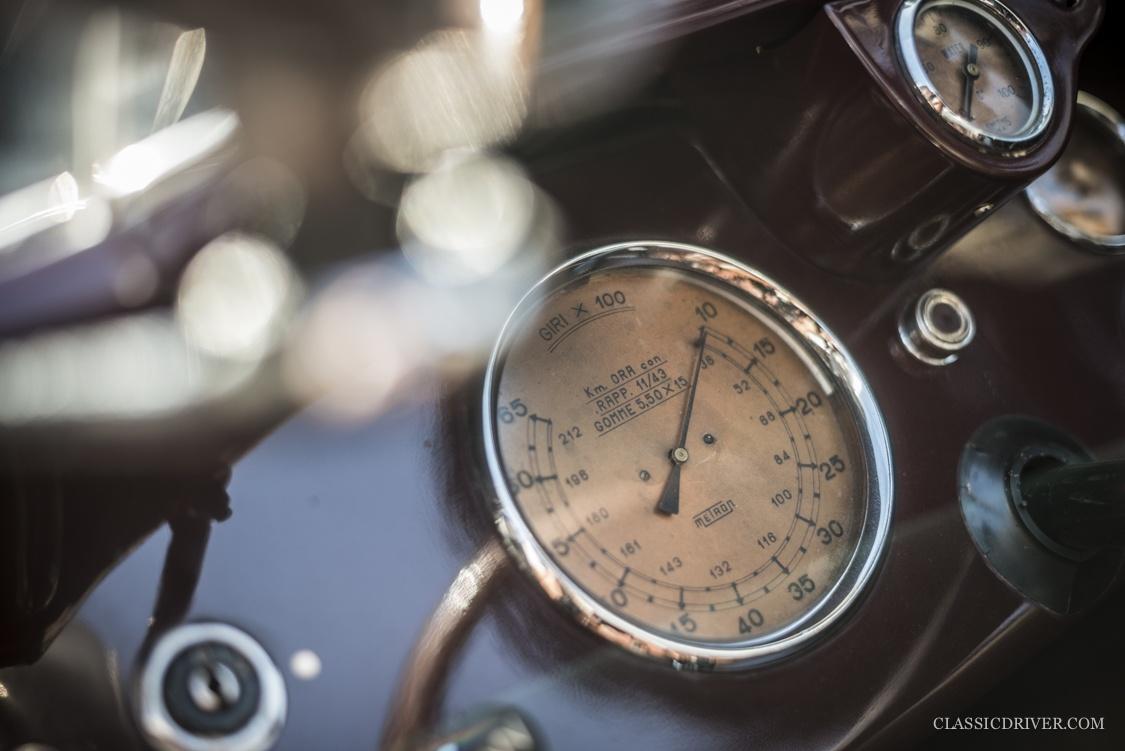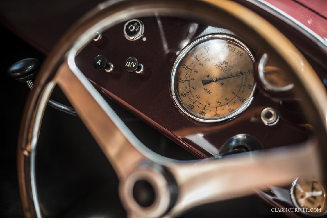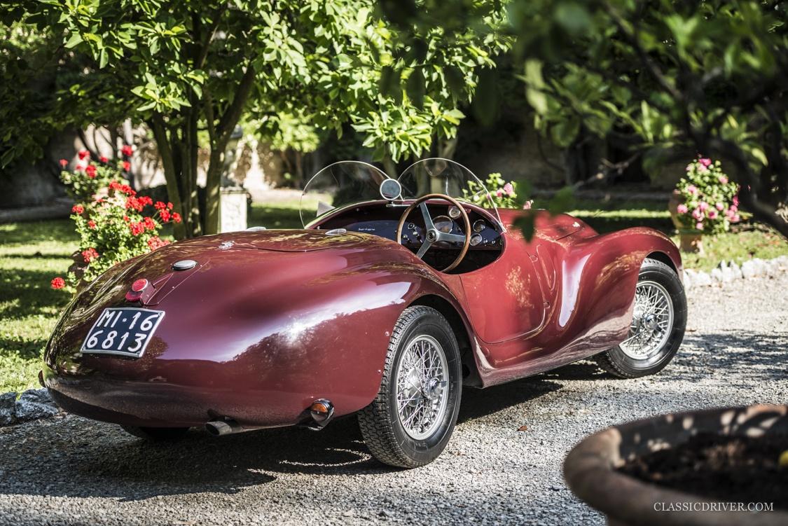 Die offene Karosserie mit dem markanten Kühlergrill und einer ultramodernen Plexiglas-Windscheibe wurde von der Carrozzeria Touring Superleggera gezeichnet, der 815 rollte auf Speichenrädern von Borrani.