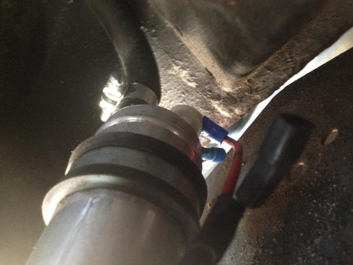 Soo weiter  zum Öltemperatursensor................  das Kabel habe ich gefunden, es hängt im Kabelbaum wo die Benzinpumpe  dran hängt mit drin (siehe 1.Bild!)  sorry wegen nicht scharf, aber ich habe nur 10cm Platz unterm Auto ...........    Also Durchgangsprüfer drangehängt "piiiieeeep" passt!!